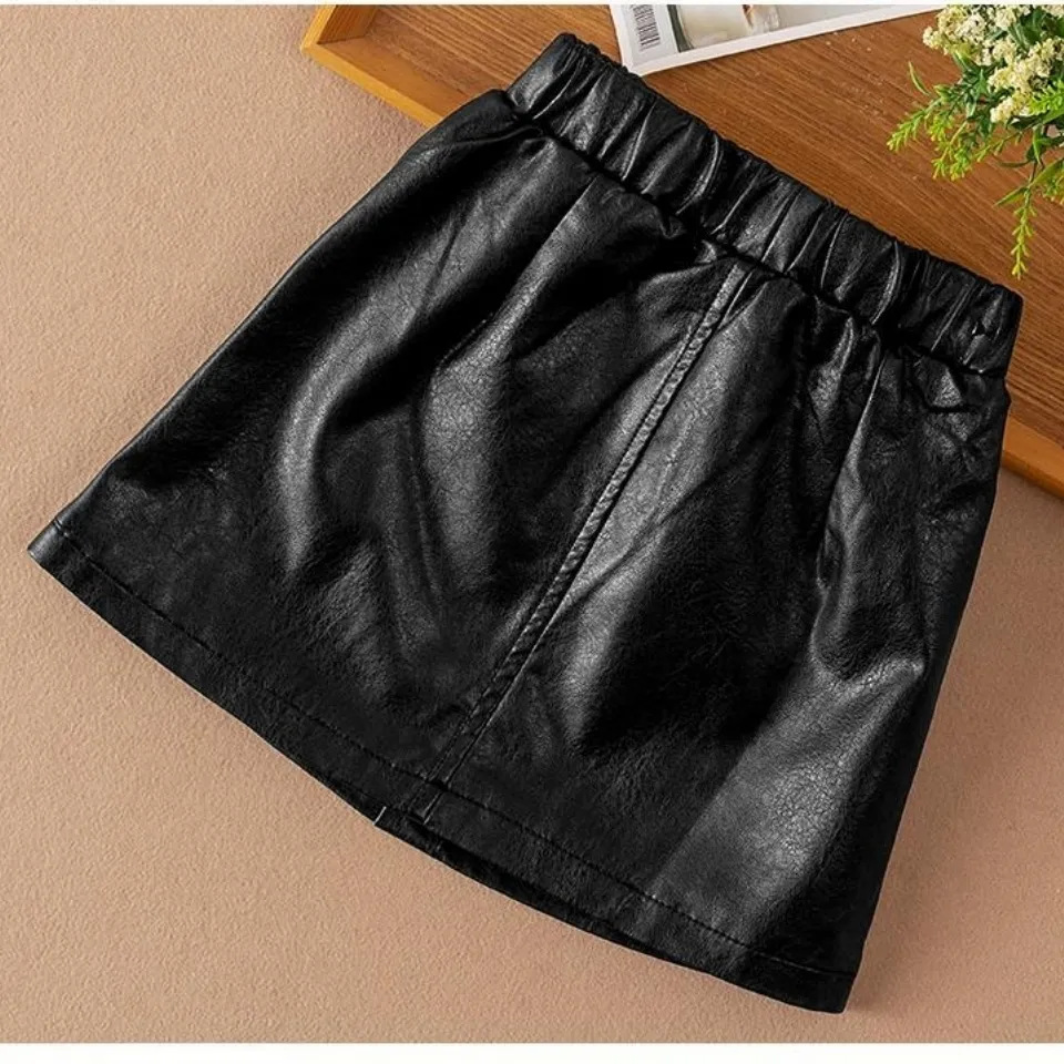 소녀 가슴 스커트 2024 봄과 가을 새로운 도착 작은 소녀 A-라인 가죽 스커트 아기 소녀의 스커트 의상 어린이 스커트 유행