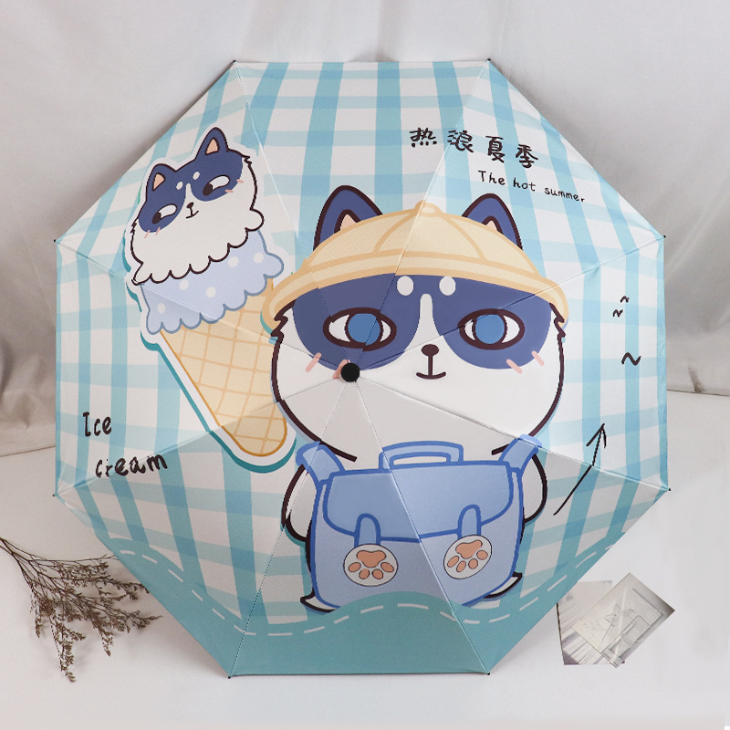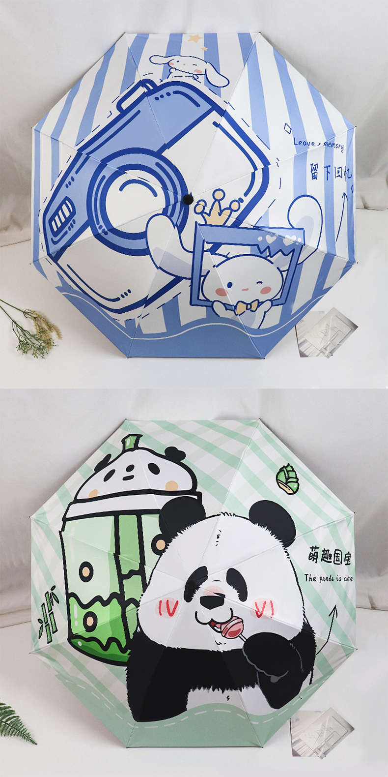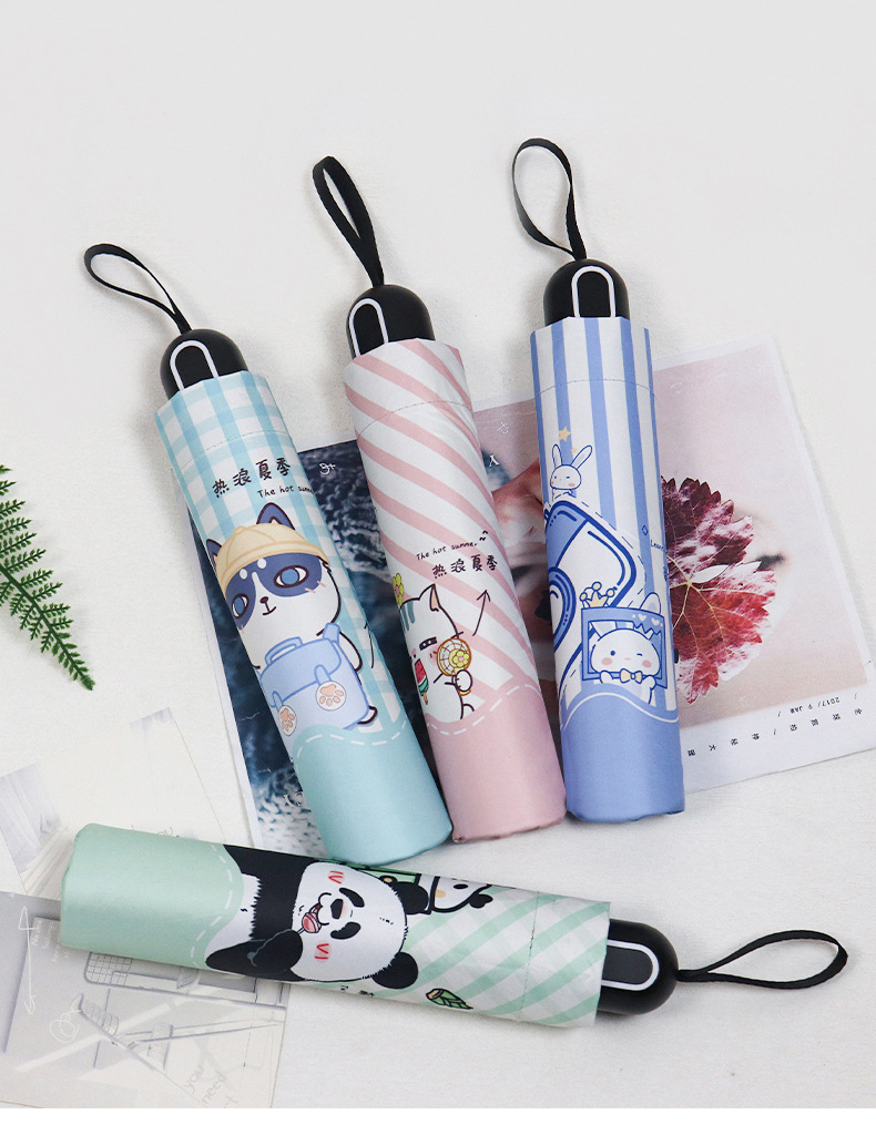 3 배 수동 만화 우산 검은 테이프 태양 보호 자외선 보호 비 및 비 이중 사용 학생 어린이 귀여운 차양