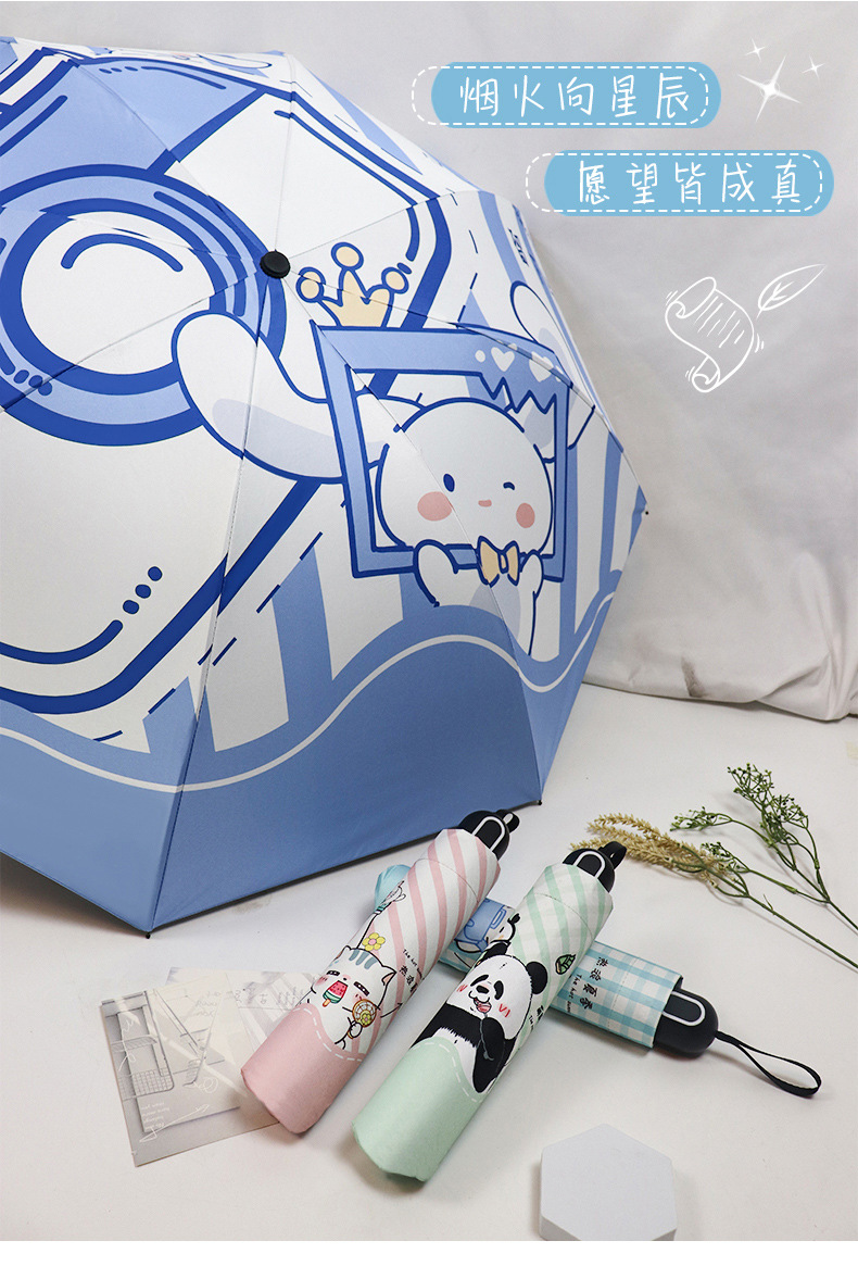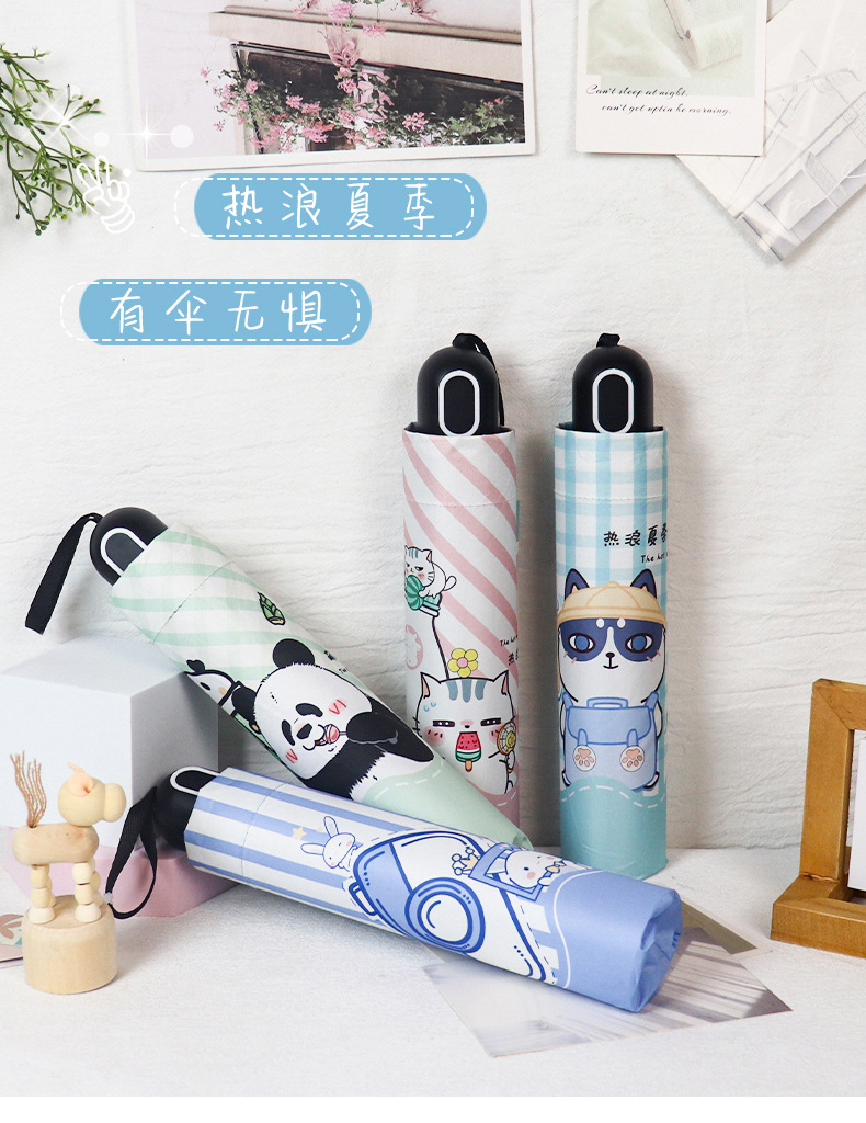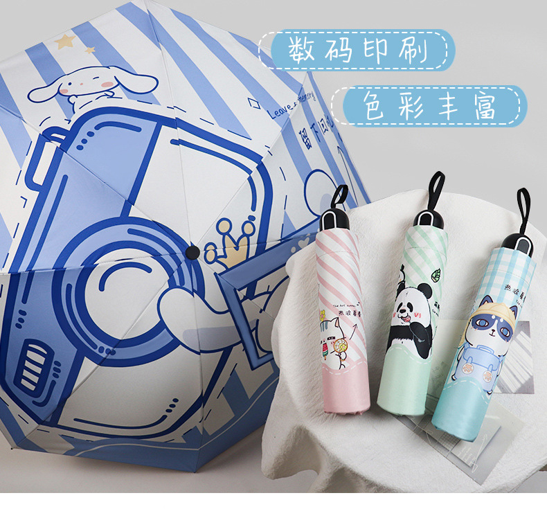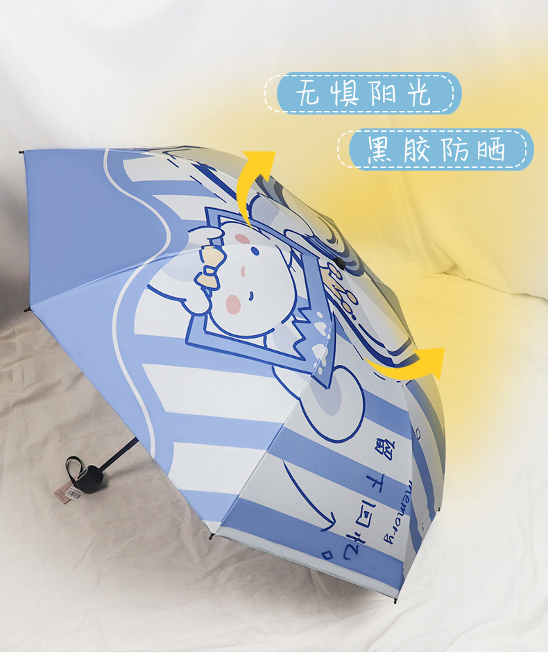 3 배 수동 만화 우산 검은 테이프 태양 보호 자외선 보호 비 및 비 이중 사용 학생 어린이 귀여운 차양스토어 가기