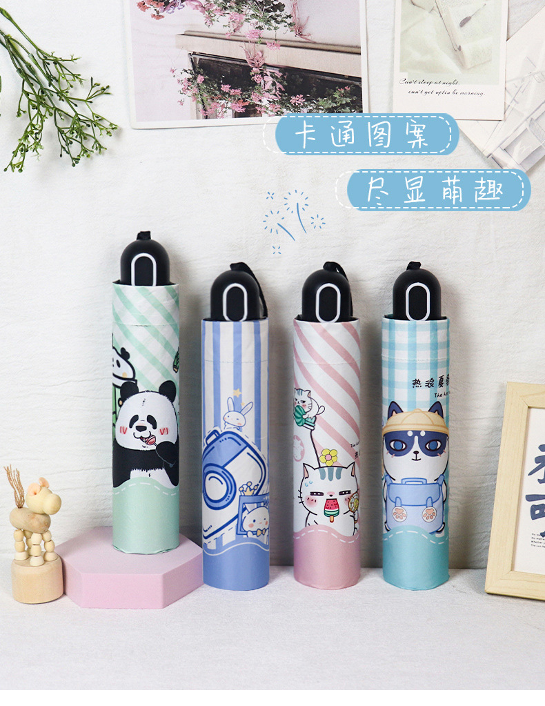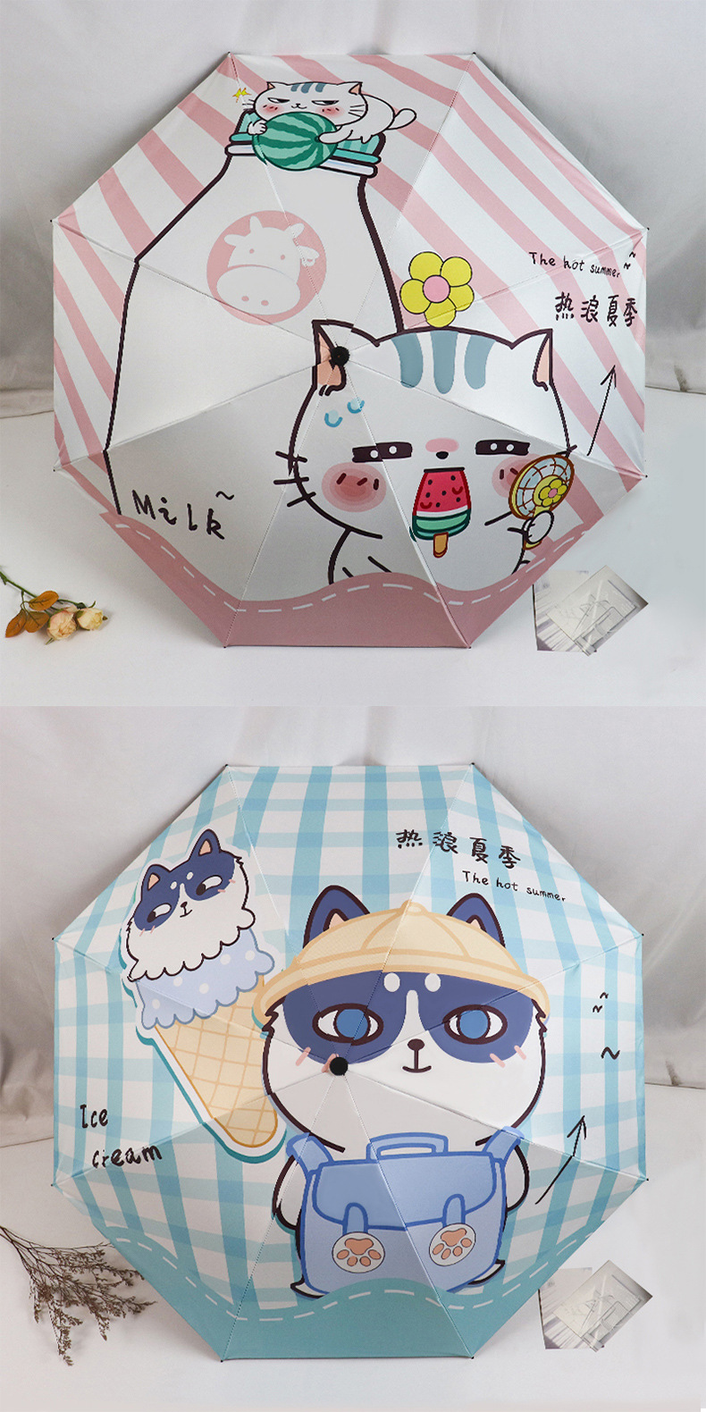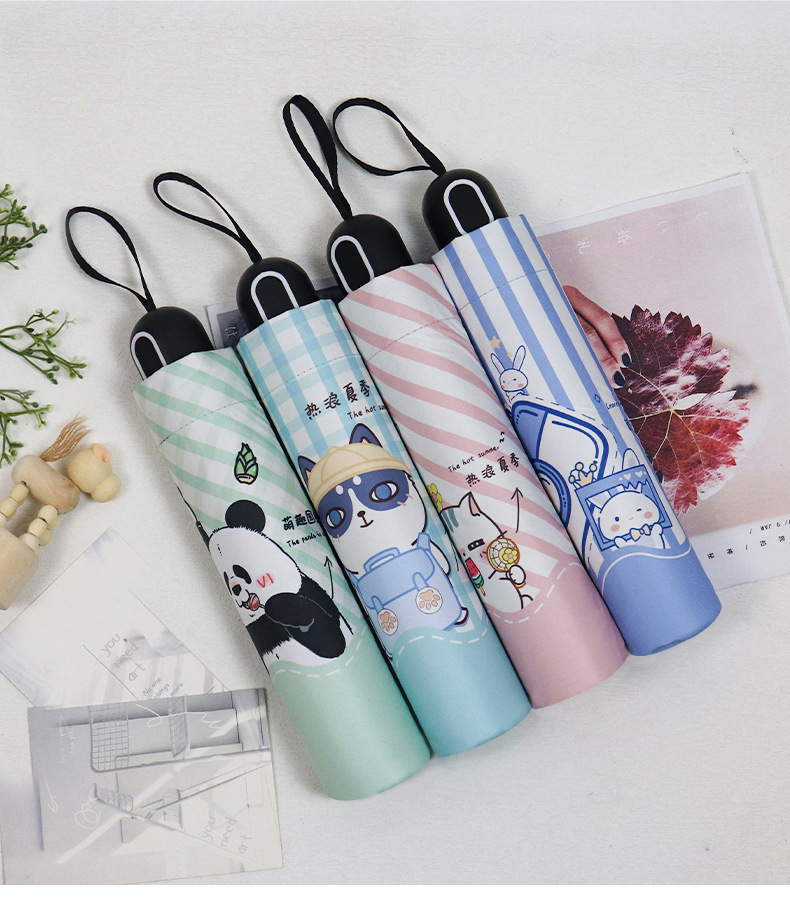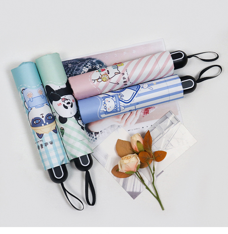 3 배 수동 만화 우산 검은 테이프 태양 보호 자외선 보호 비 및 비 이중 사용 학생 어린이 귀여운 차양스토어 가기