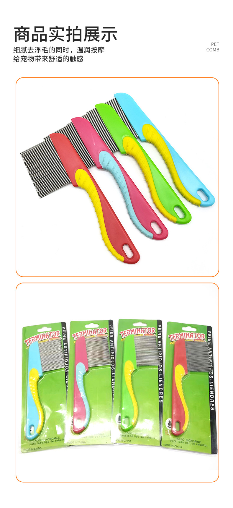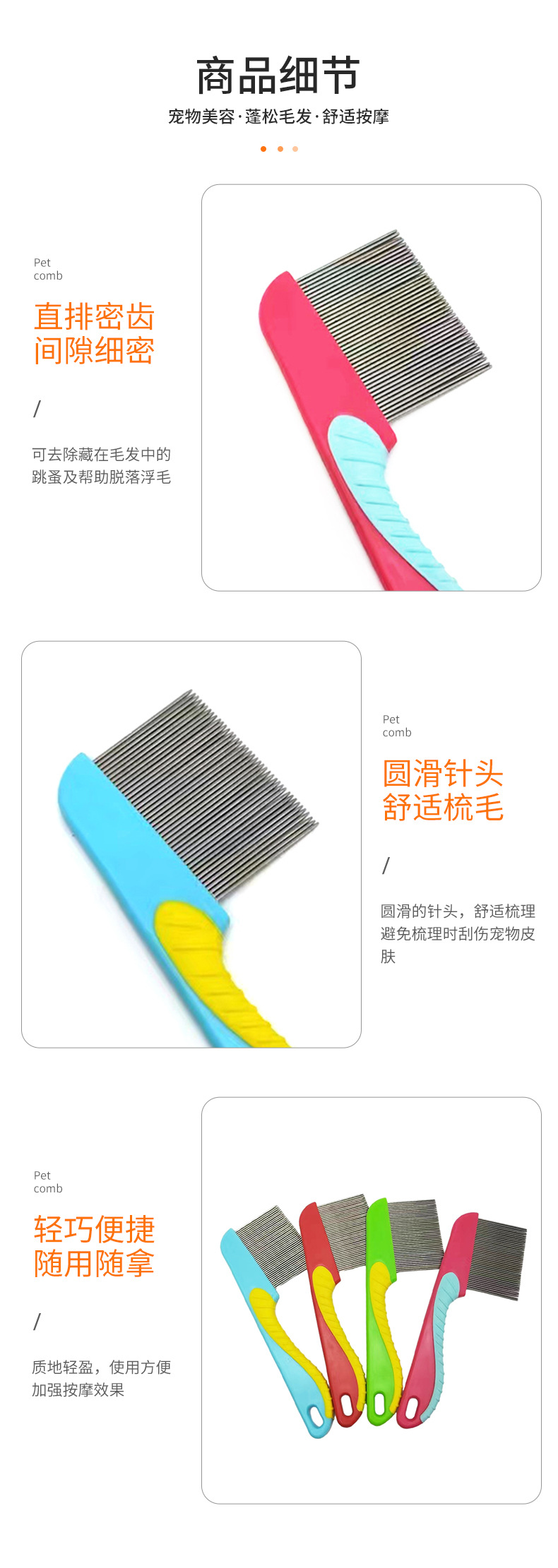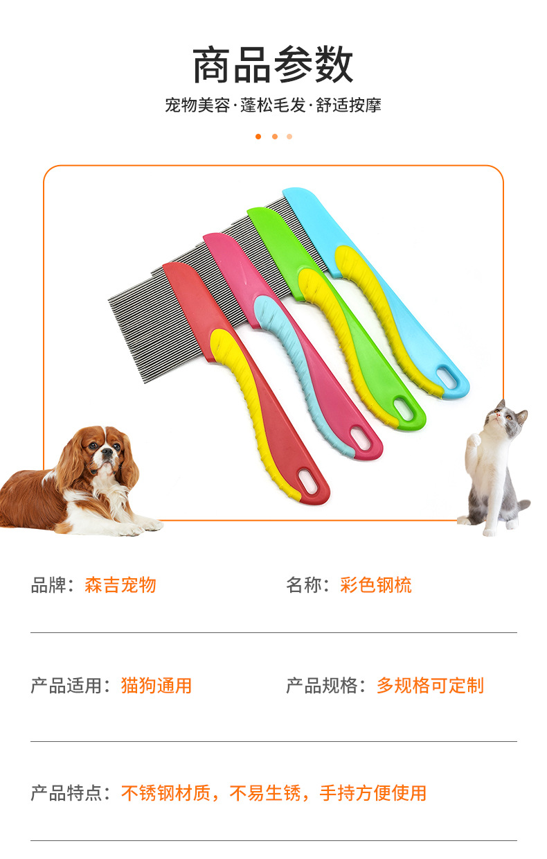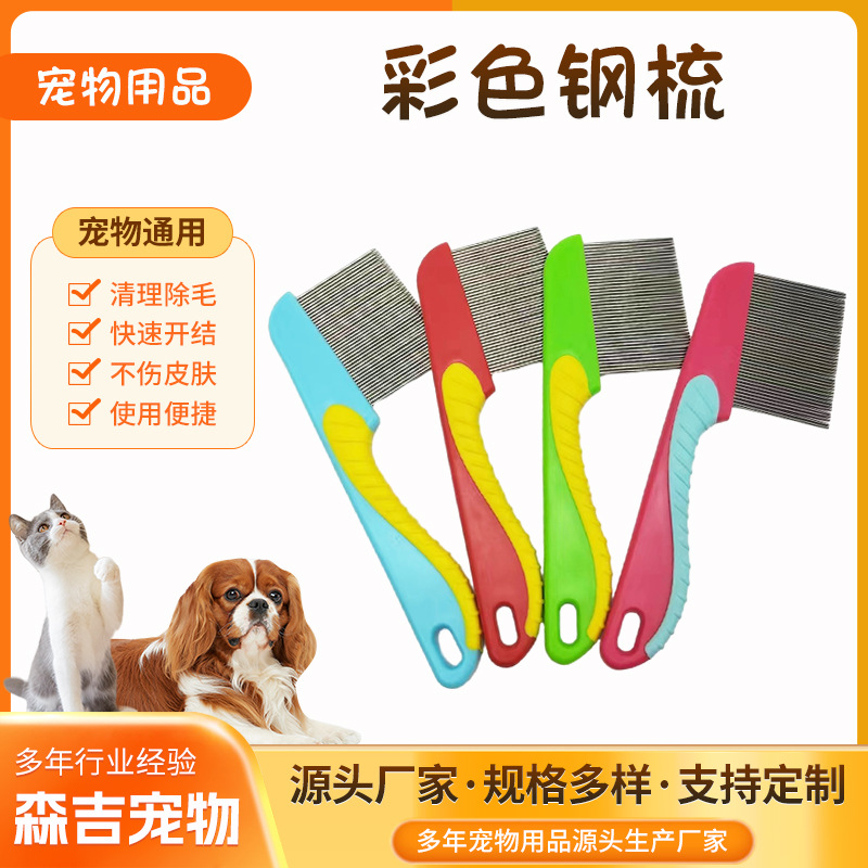 애완 동물 컬러 강철 빗 고양이와 개 머리 제거 바늘 빗 애완 동물 조밀 한 치아 빗 고양이 조밀 한 빗 벼룩 강철 빗