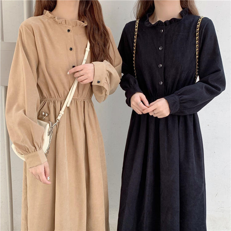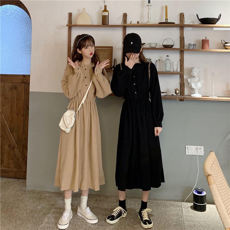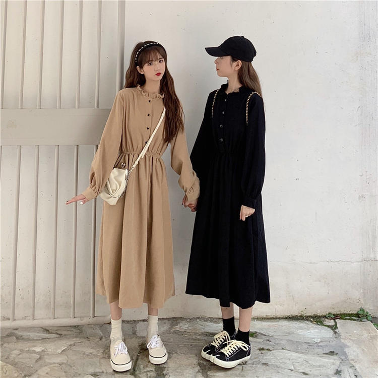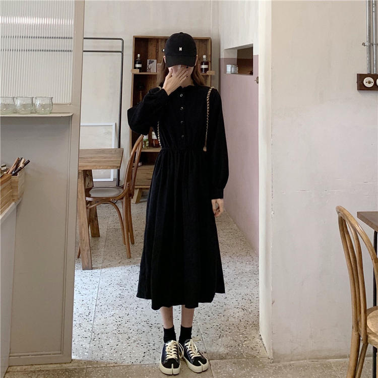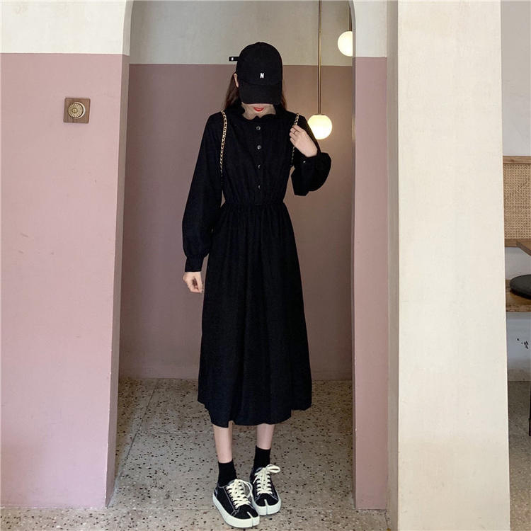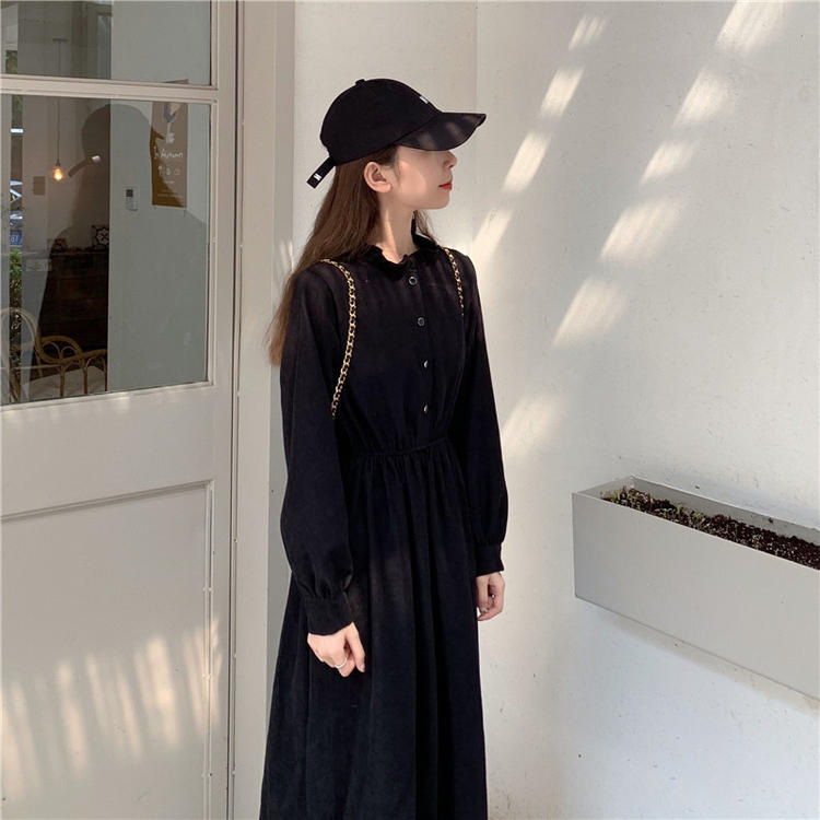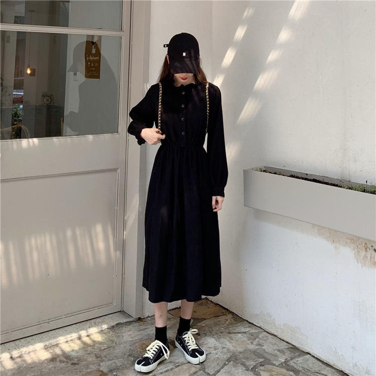 하이 엔드 콜드 스타일 우아한 여신 스타일 긴 소매 원피스 이른 가을 유행 여성 의류 프랑스 허리 꽉 작은 검은 치마스토어 가기