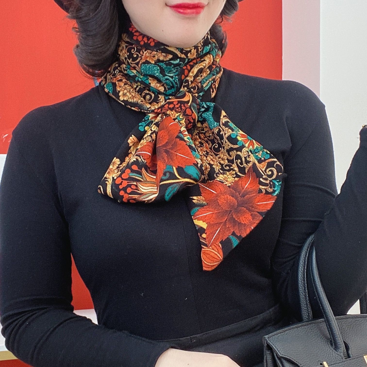 • 흑백 로즈-호주 벨벳 코튼 연장 긴 스카프