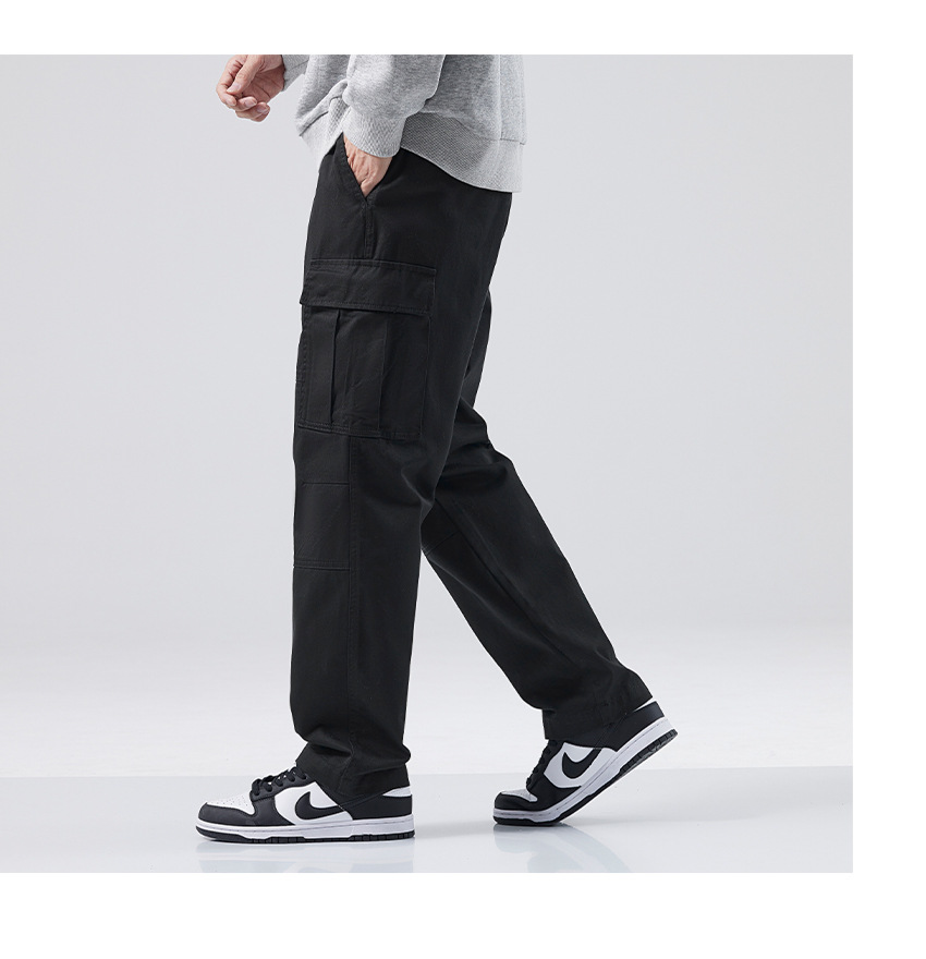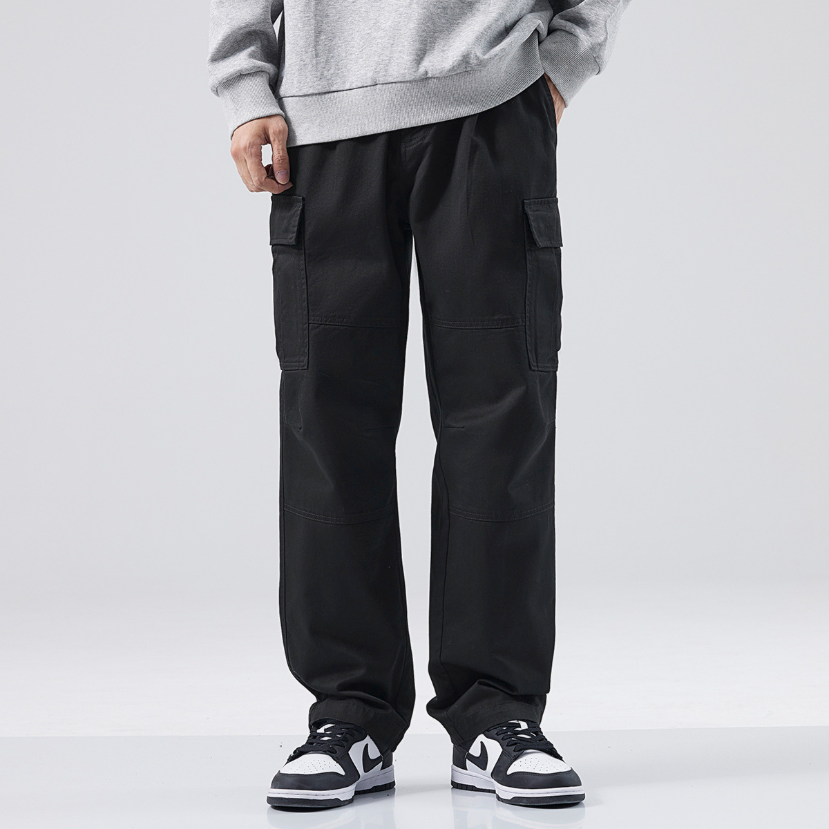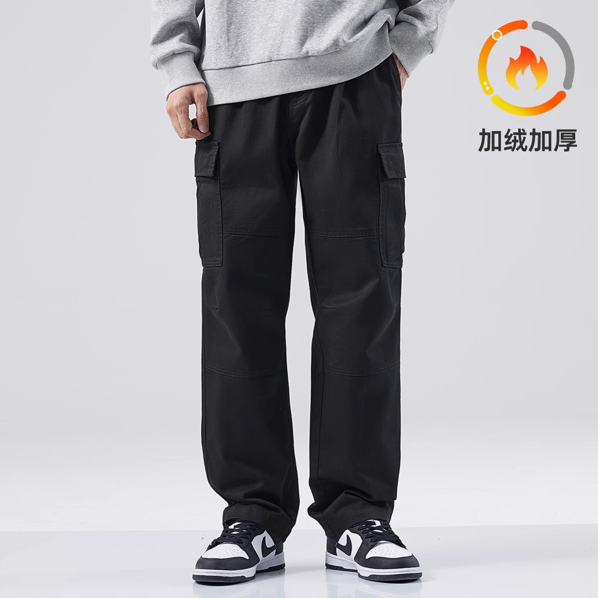 가을과 겨울 면화 멀티 포켓 바지 바지 남성 느슨한 스트레이트 미국 패션 브랜드 청소년 블랙 캐주얼 바지