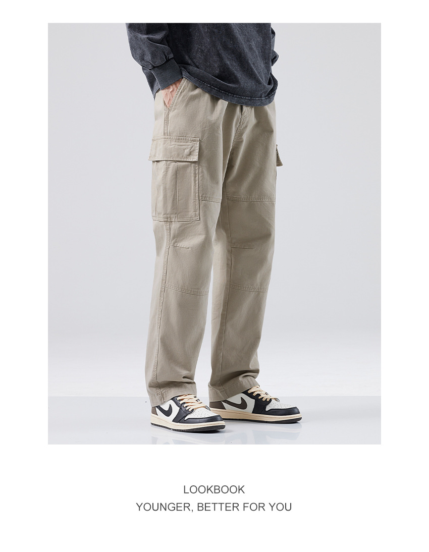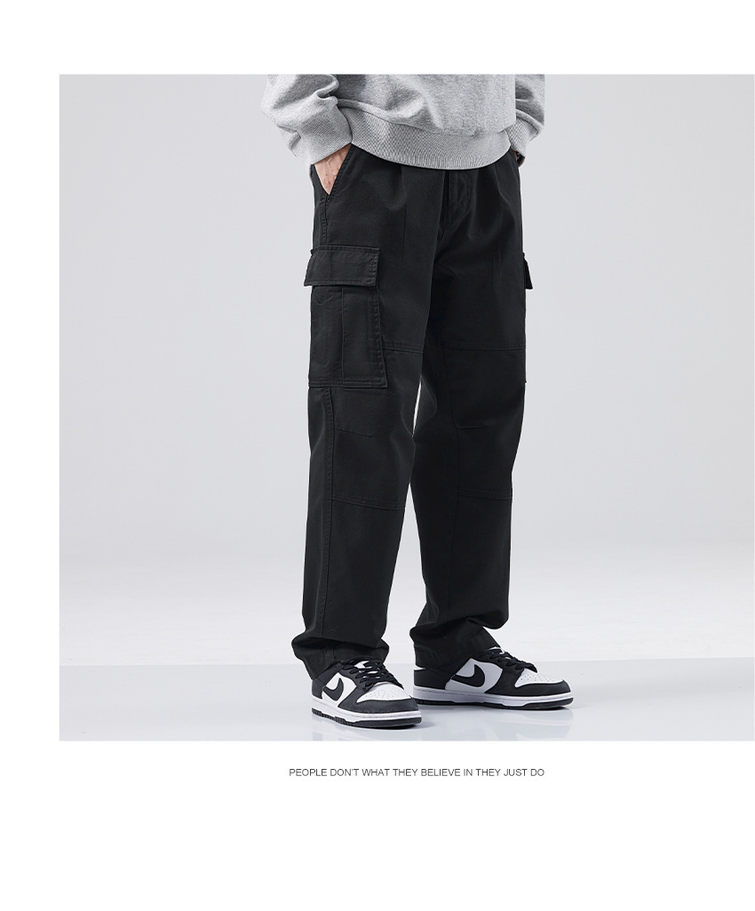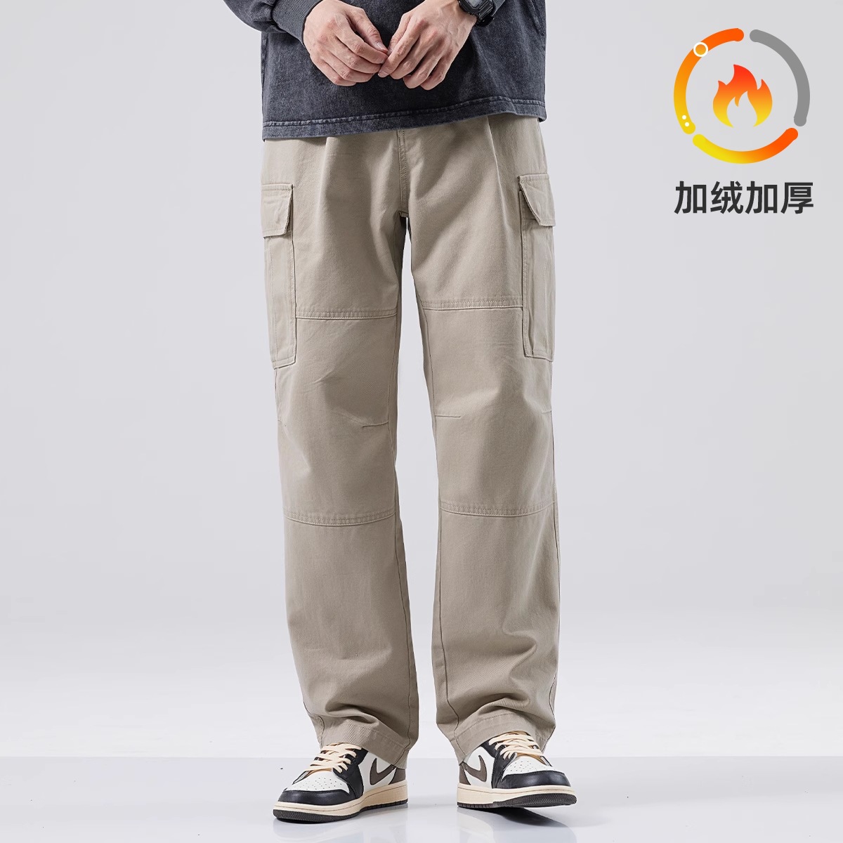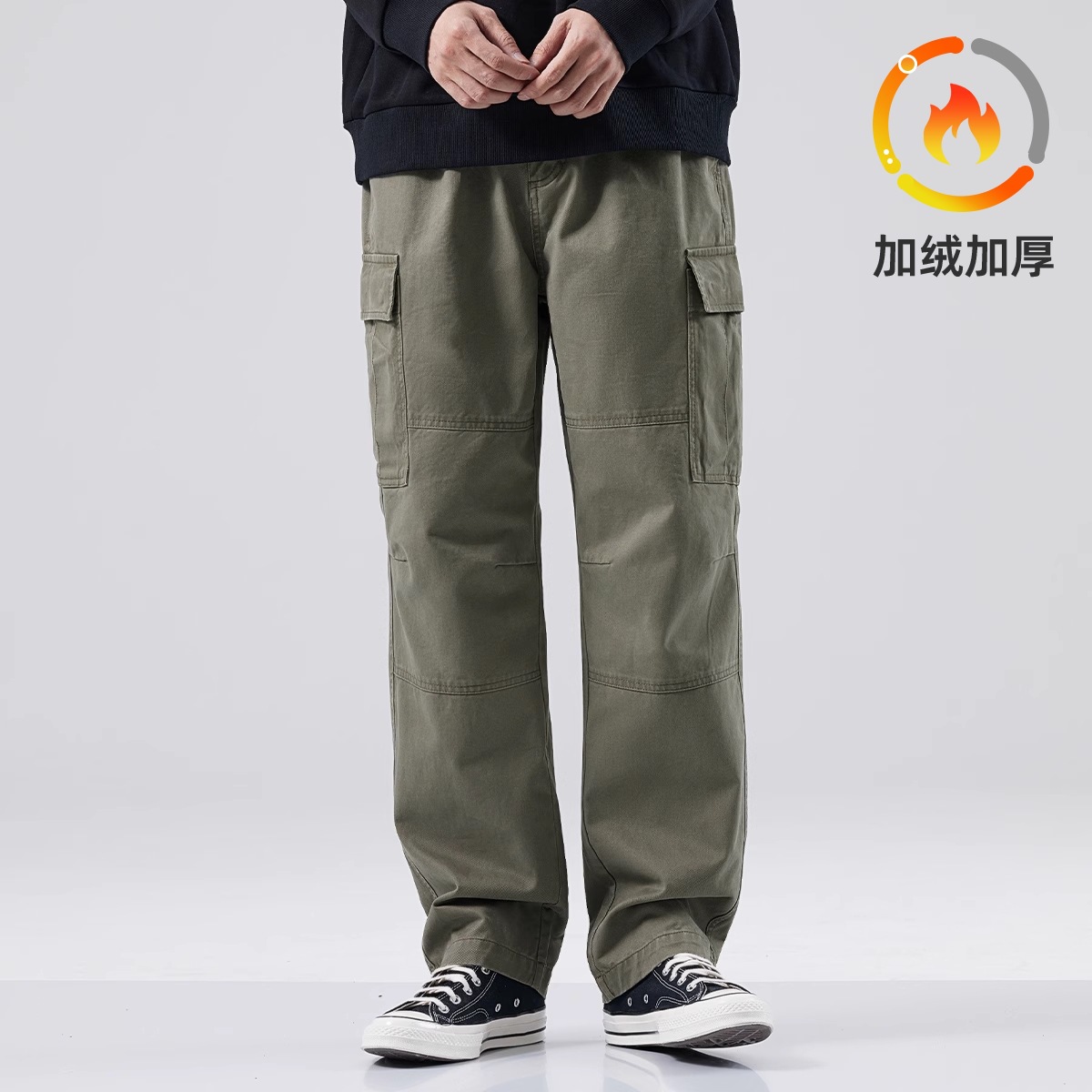 가을과 겨울 면화 멀티 포켓 바지 바지 남성 느슨한 스트레이트 미국 패션 브랜드 청소년 블랙 캐주얼 바지