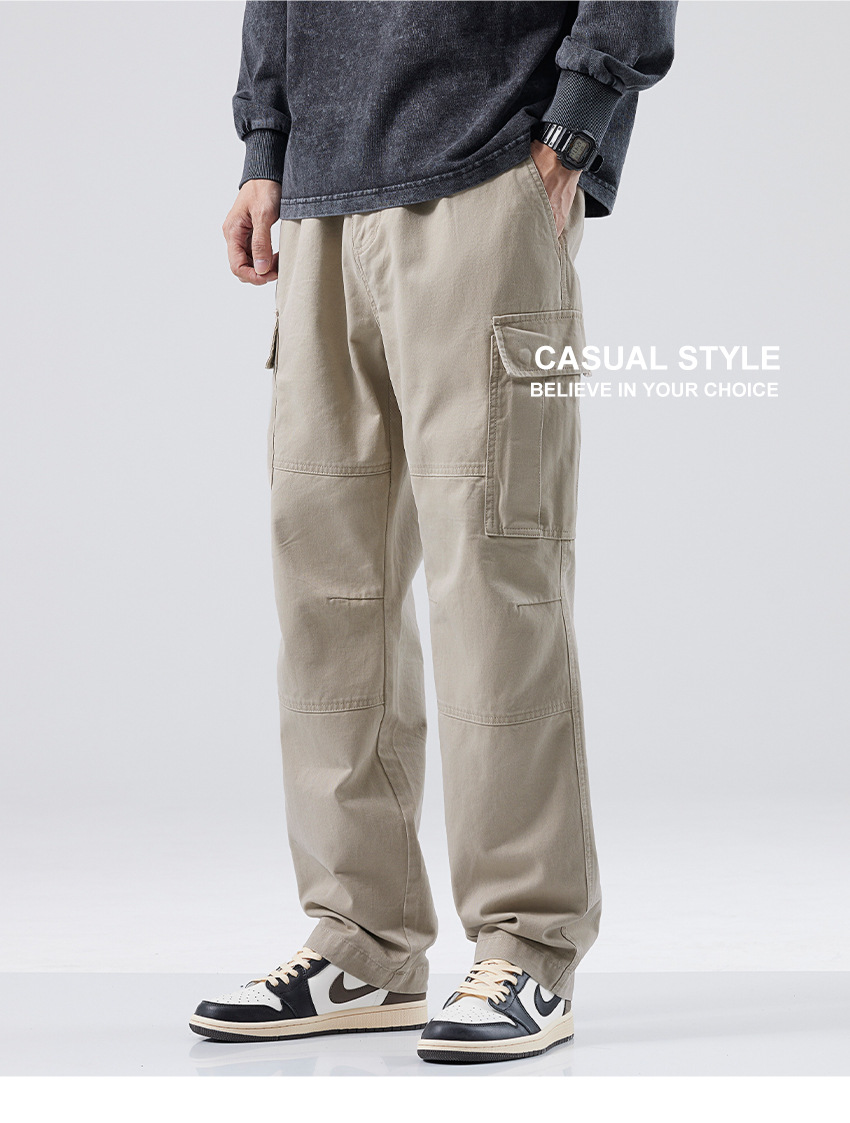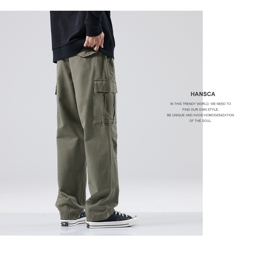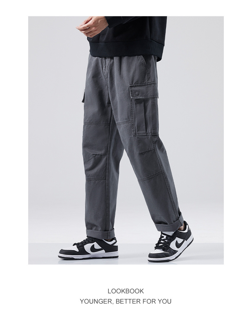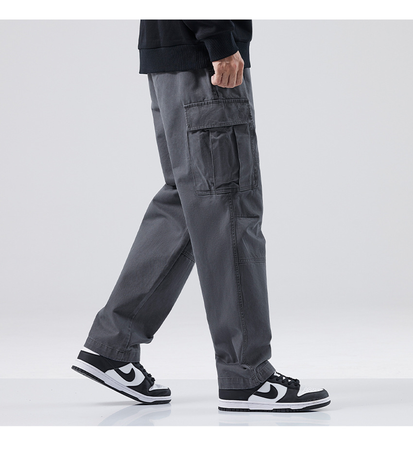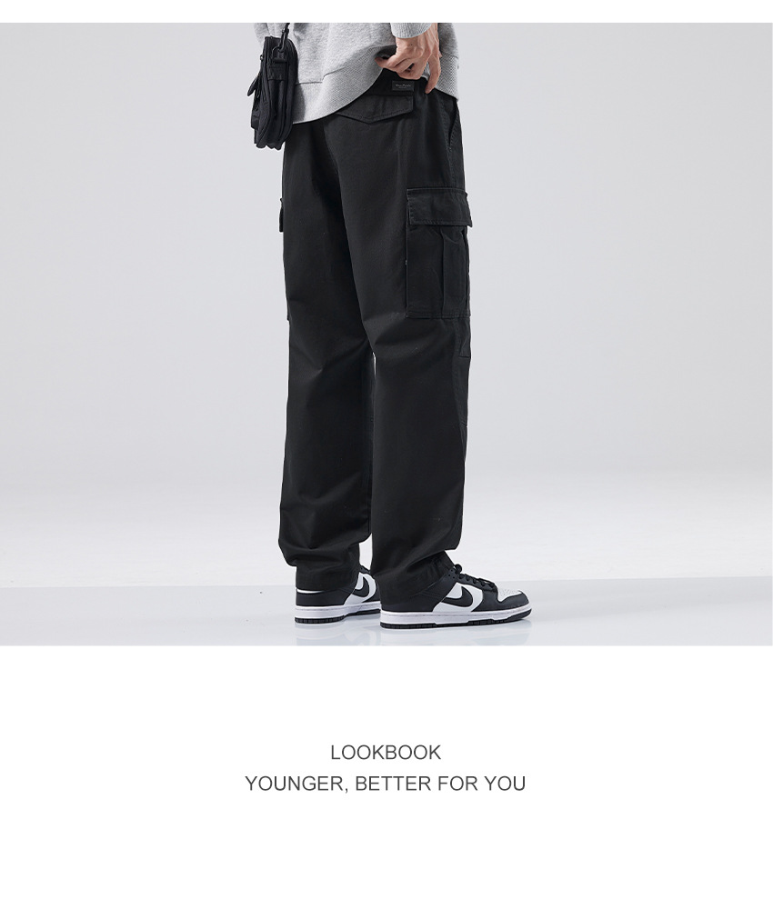가을과 겨울 면화 멀티 포켓 바지 바지 남성 느슨한 스트레이트 미국 패션 브랜드 청소년 블랙 캐주얼 바지스토어 가기