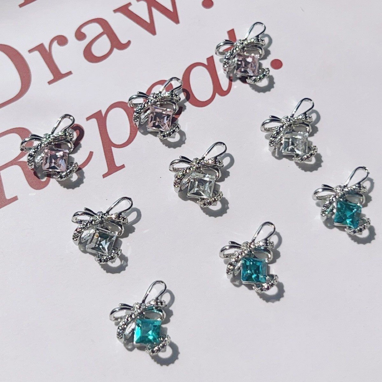혼합 빛 럭셔리 활 네일 보석 핑크 호수 블루 화이트 스퀘어 다이아몬드 여왕 어머니 다이아몬드 입체 활 다이아몬드스토어 가기
