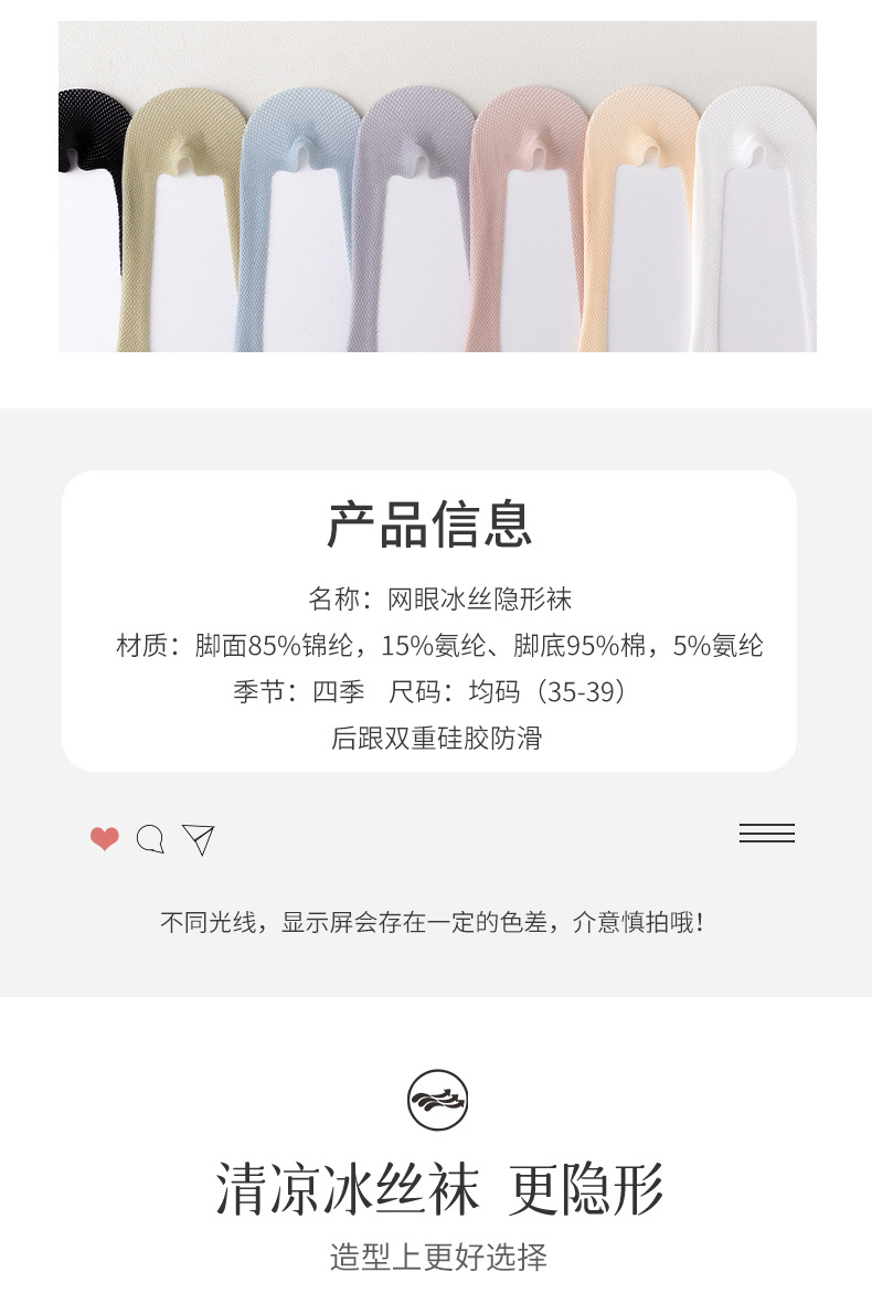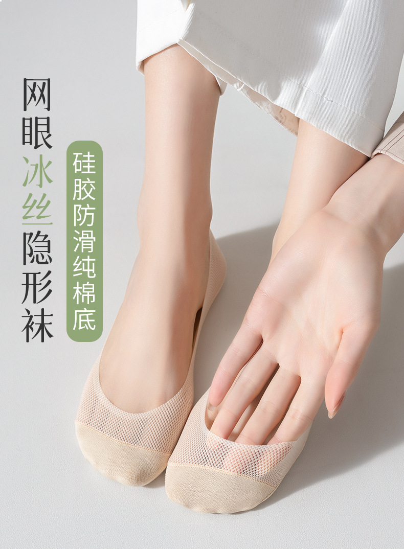 아이스 실크 보트 양말 여성의 여름 얇은 순수한면 바닥 인터넷 유명 인사 얕은 입 메쉬 양말 여름 미끄럼 미끄럼 방지 발 뒤꿈치 보이지 않는 양말