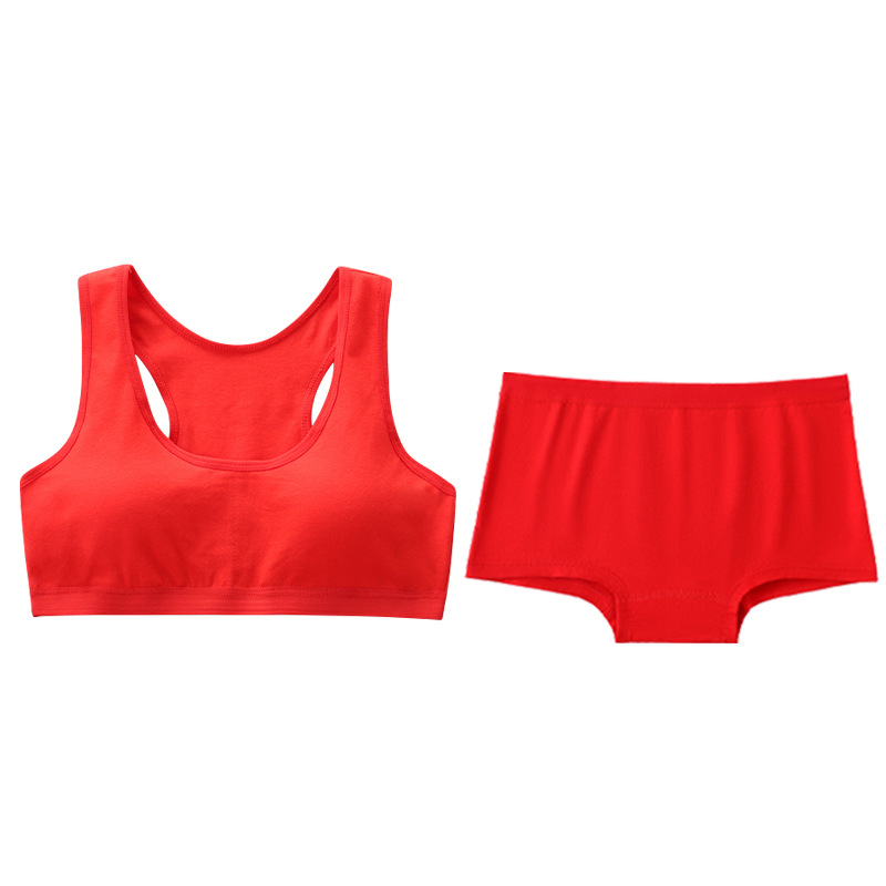 소녀 출생 속옷 속옷 세트 붉은 중간 큰 어린이 조끼 12-16 세 튜브 최고 개발 브래지어