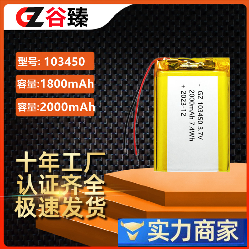 现货103450-2000mAh美容仪灯具风扇UN38.3聚合物三元锂电池