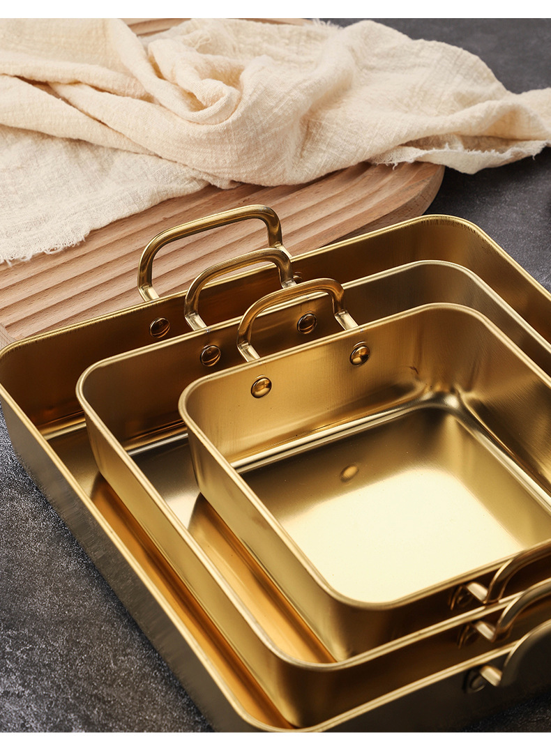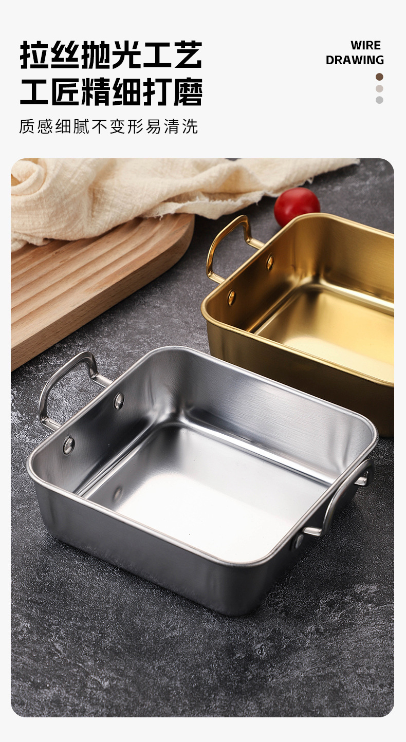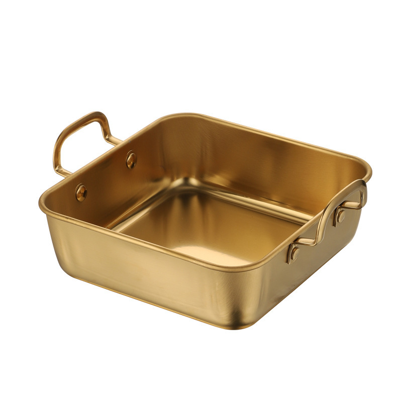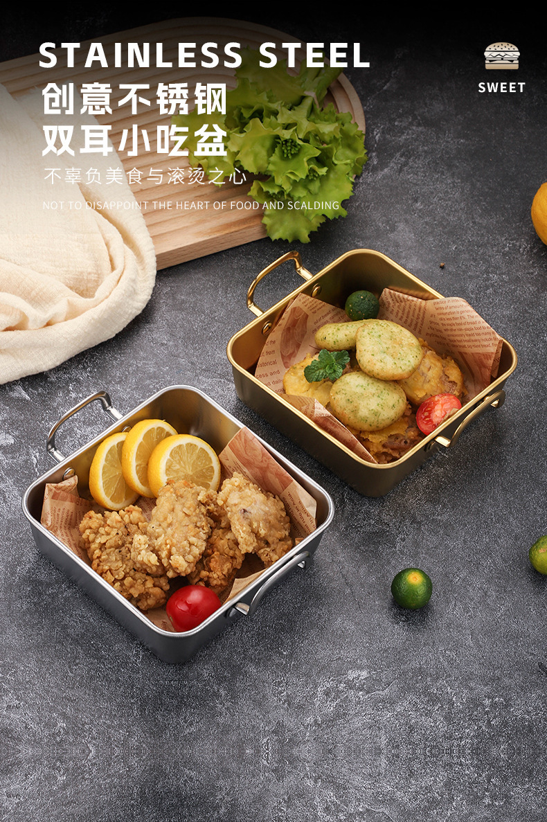 한국식 스테인레스 스틸 스낵 플레이트 골든 스퀘어 더블 이어 플랫 트레이 크리에이티브 스퀘어 냄비 플레이트 프렌치 프라이드 치킨 플레이트