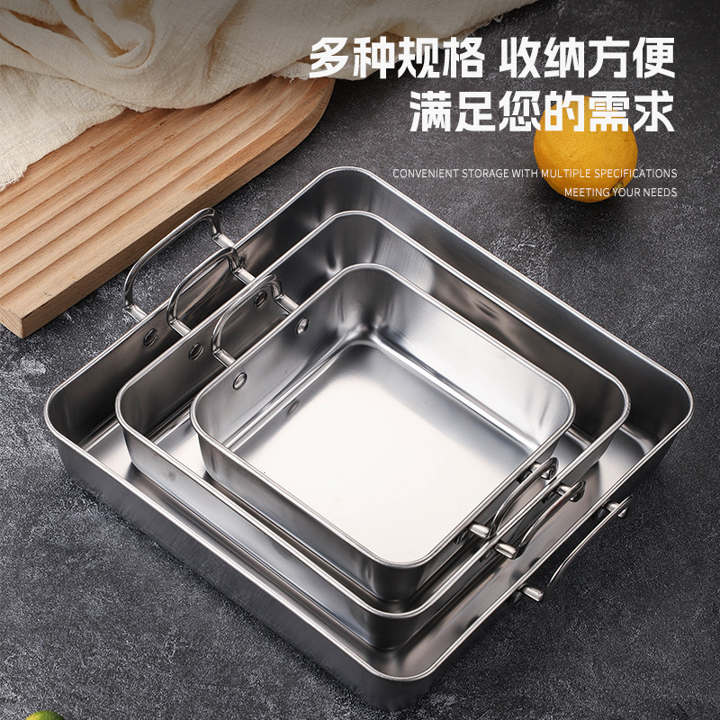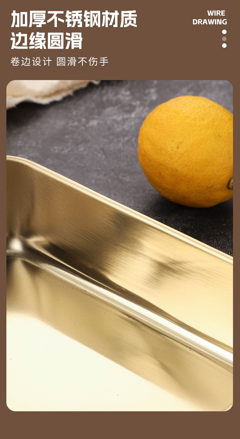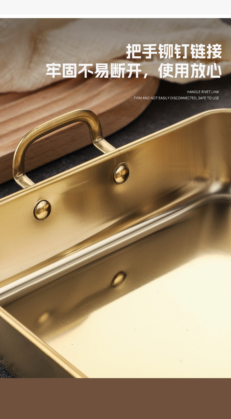 한국식 스테인레스 스틸 스낵 플레이트 골든 스퀘어 더블 이어 플랫 트레이 크리에이티브 스퀘어 냄비 플레이트 프렌치 프라이드 치킨 플레이트