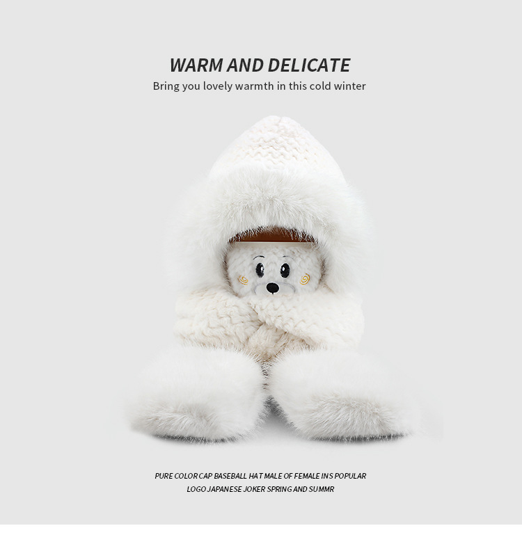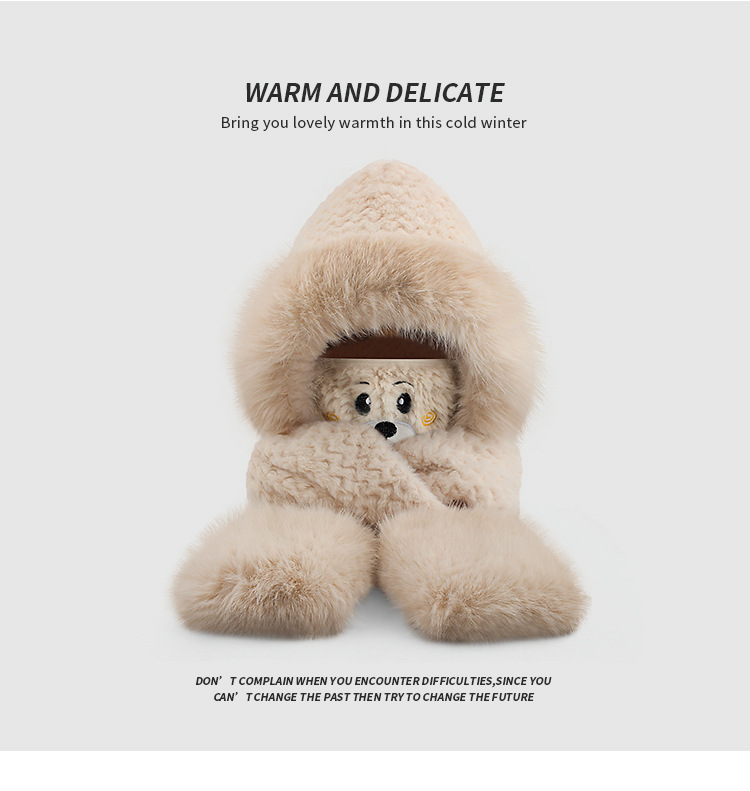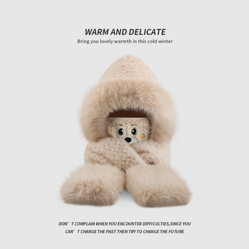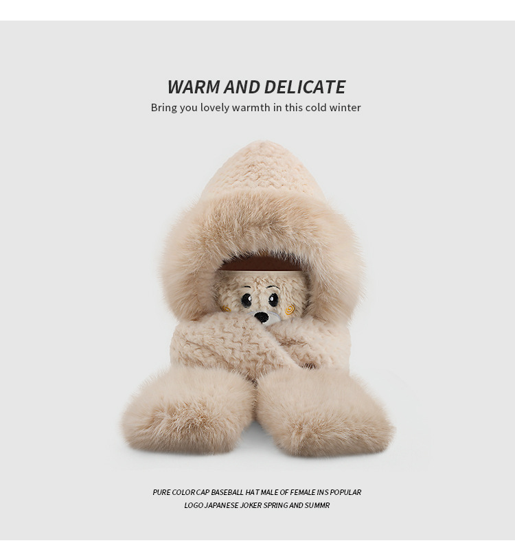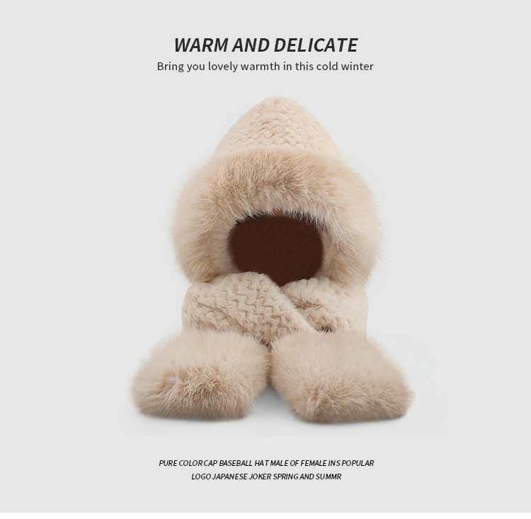 플러시 모자, 스카프, 장갑이 하나로 통합된 여성용 가을 겨울용 사이클링 방한 귀 보호 따뜻한 후드형 단색 3-in-1스토어 가기