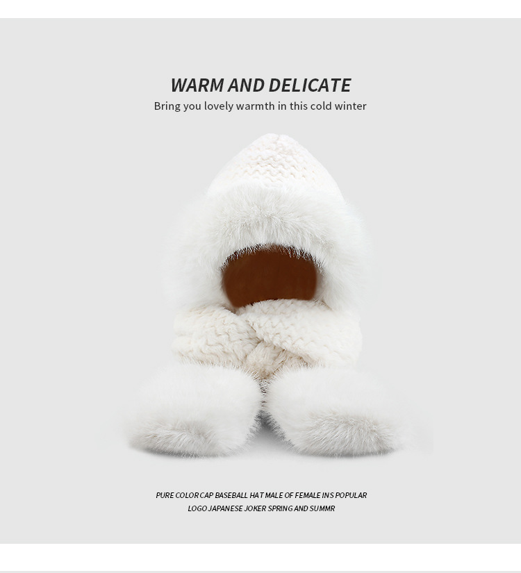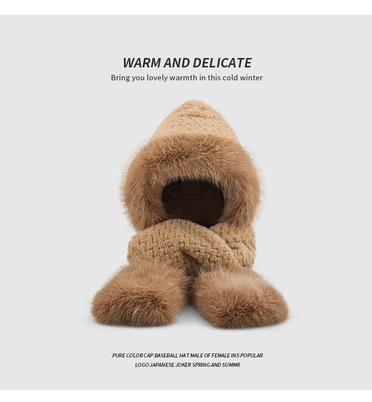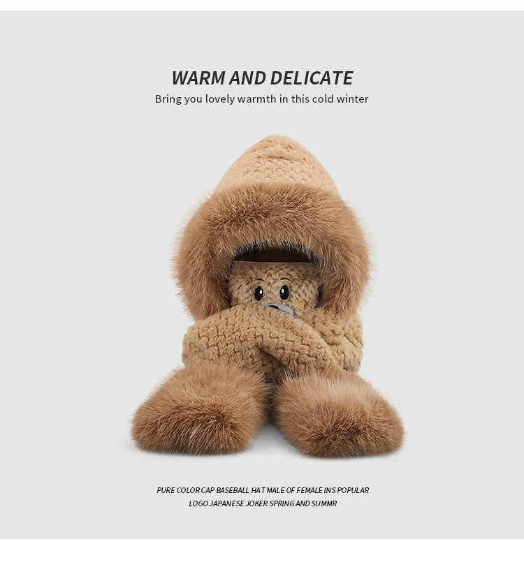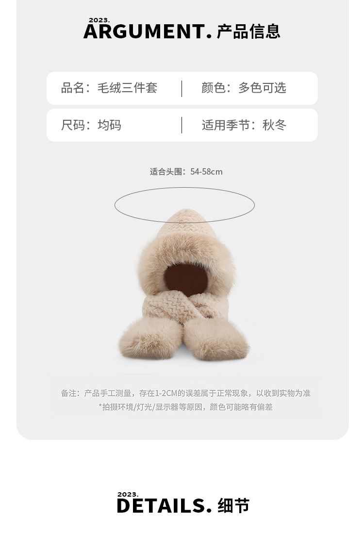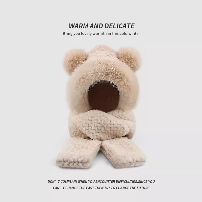 플러시 모자, 스카프, 장갑이 하나로 통합된 여성용 가을 겨울용 사이클링 방한 귀 보호 따뜻한 후드형 단색 3-in-1스토어 가기