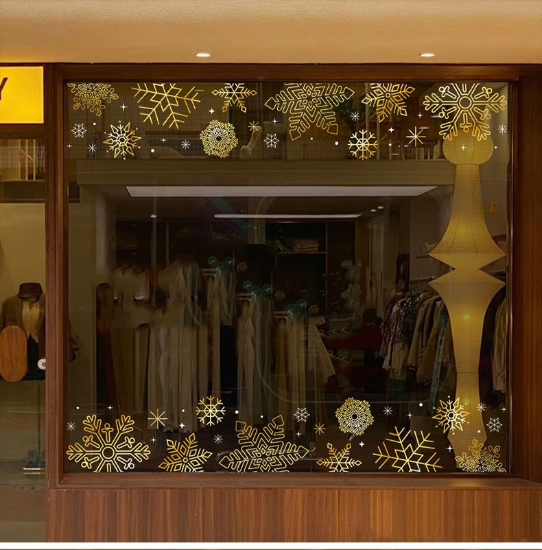 크리스마스 정전기 스티커 2025 쇼핑몰 창문 금색 큰 눈송이 유리 스티커 쇼핑몰 상점 문 창문 장식스토어 가기
