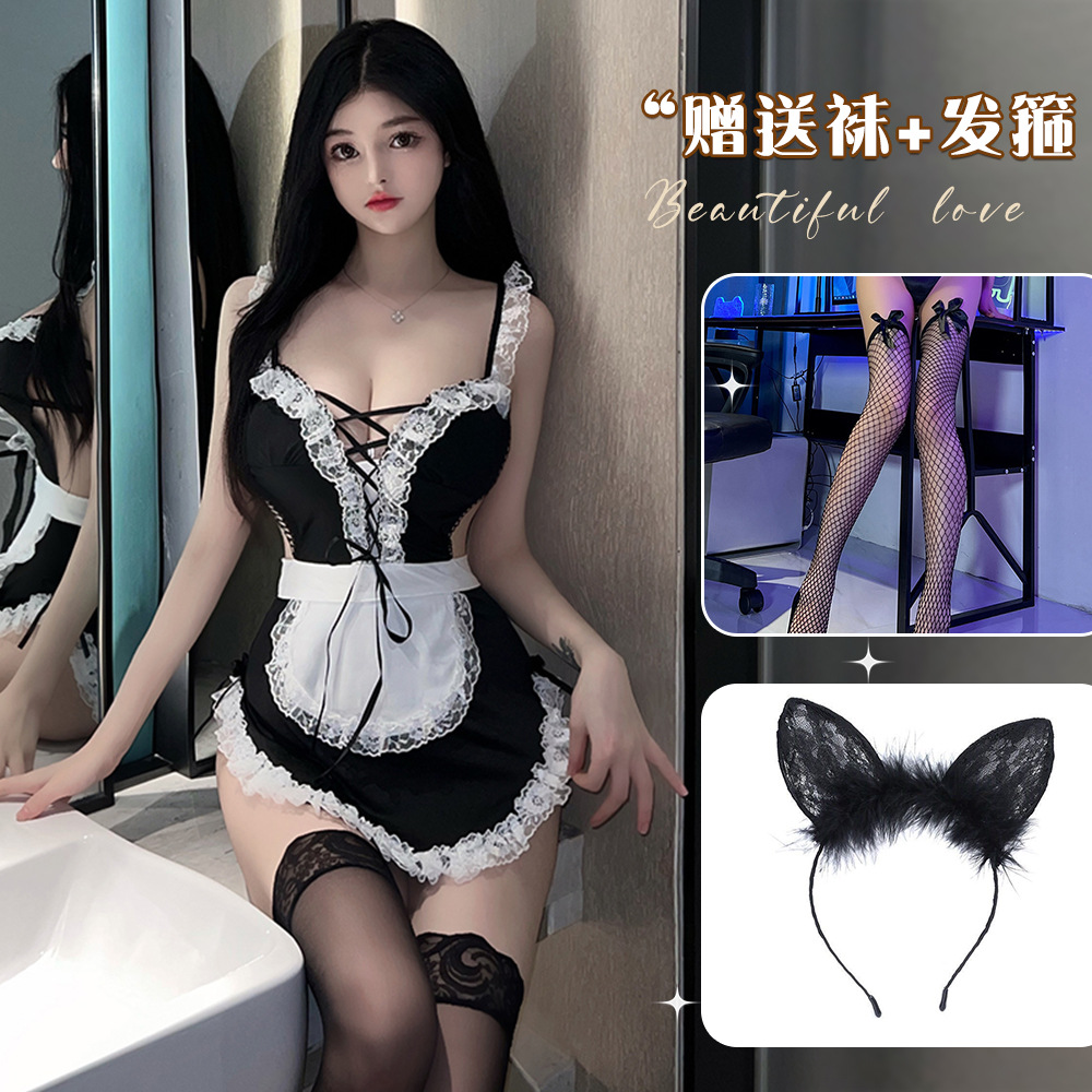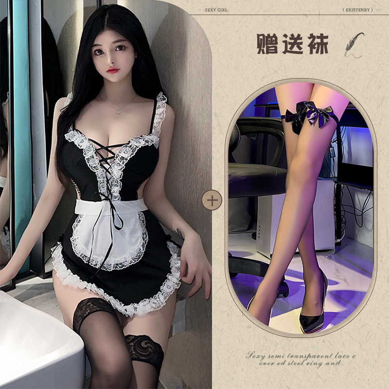 밤 듣기 향수 섹시한 란제리 섹시한 슬링 레이스 유혹 하녀 의류 레이스 장난 꾸러기 하녀 역할 유니폼
