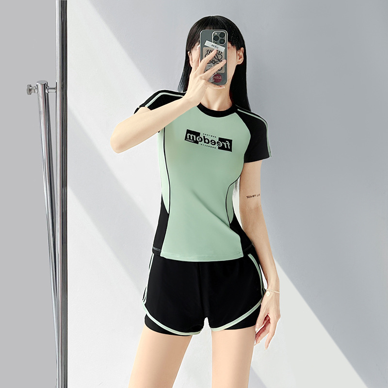 수영복 여성 투피스 보수적 인 플러스 사이즈 배꼽 슬리밍 레터 컬러 매칭 스포츠 레저 온천 수영복스토어 가기