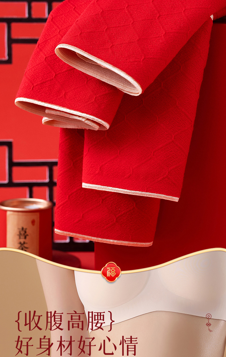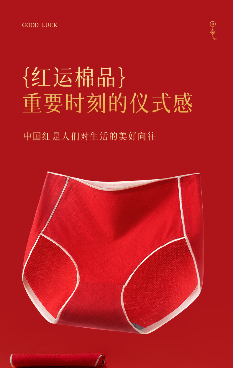 출생의 해 레드 그래 핀 항균 빨간 속옷 여성의 순수한면 신부 결혼식 중간 하이 허리 배 수축 엉덩이 리프팅 통기성