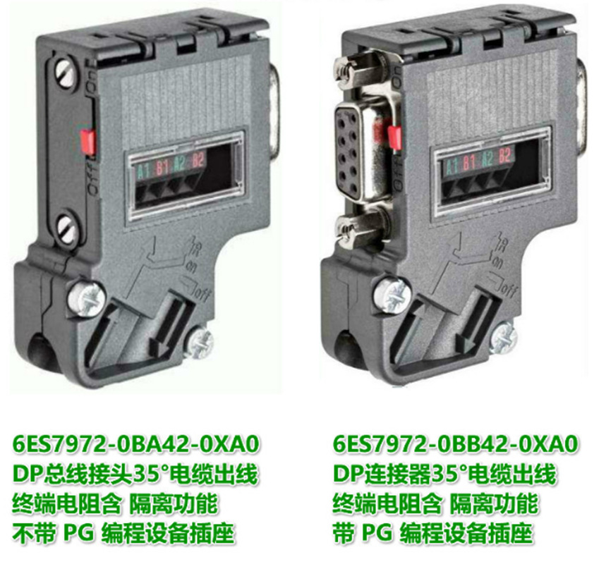 SIMATIC DP,连接器 针对 PROFIBUS 最多至 12 MBit/s 带斜向电缆出线, 15.8x 54x 39.5mm(宽x高x深), 终端电阻含 隔离功能,带 PG 编程设备插座