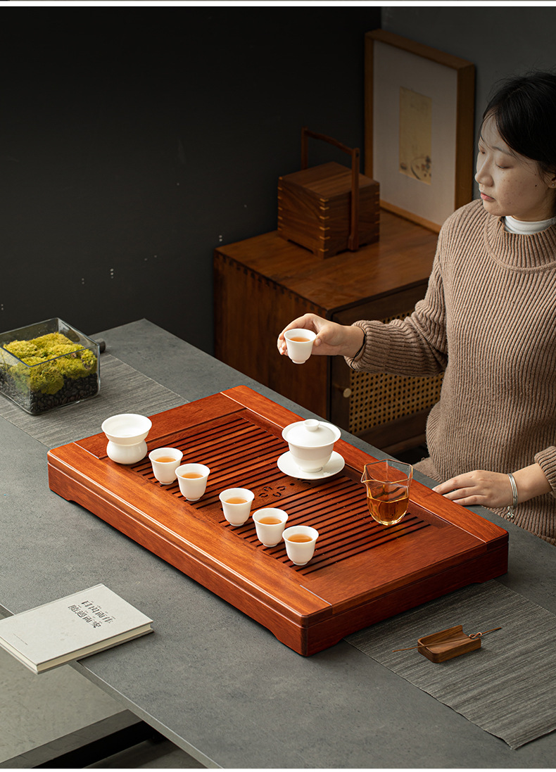 로즈 우드 티 트레이 단단한 나무 마른 티 테이블 차 차 바다 가정용 배수 서랍 티 테이블 물 저장 쿵푸 차 세트 트레이