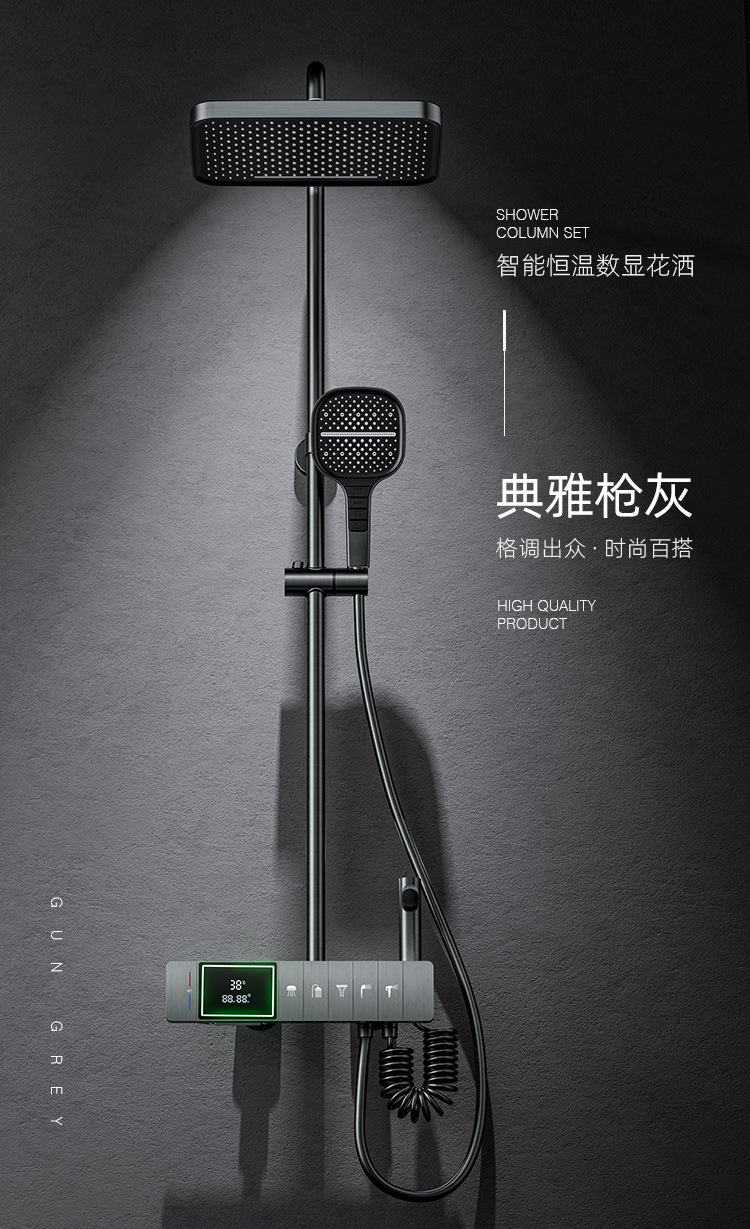 전체 구리 샤워 뮤직 박스 세트 가정용 건 그레이 항온 가압 욕실 샤워 샤워 노즐