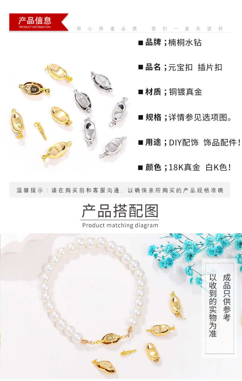 구리 도금 18K 진짜 금 주괴 버클 펄 버클 목걸이 팔찌 클립 버클 연결 버클 diy 보석 액세서리스토어 가기