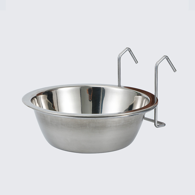 도매 매달린 애완 동물 그릇 스테인레스 스틸 개 분지 라인 철 랙 애완 동물 교수형 케이지 피더 개 그릇 고양이 그릇 고양이 분지