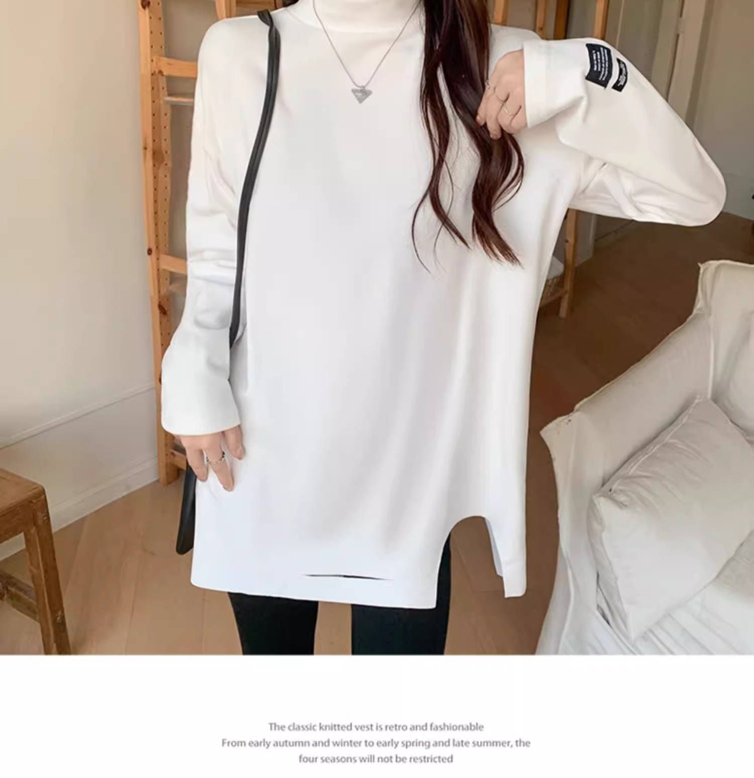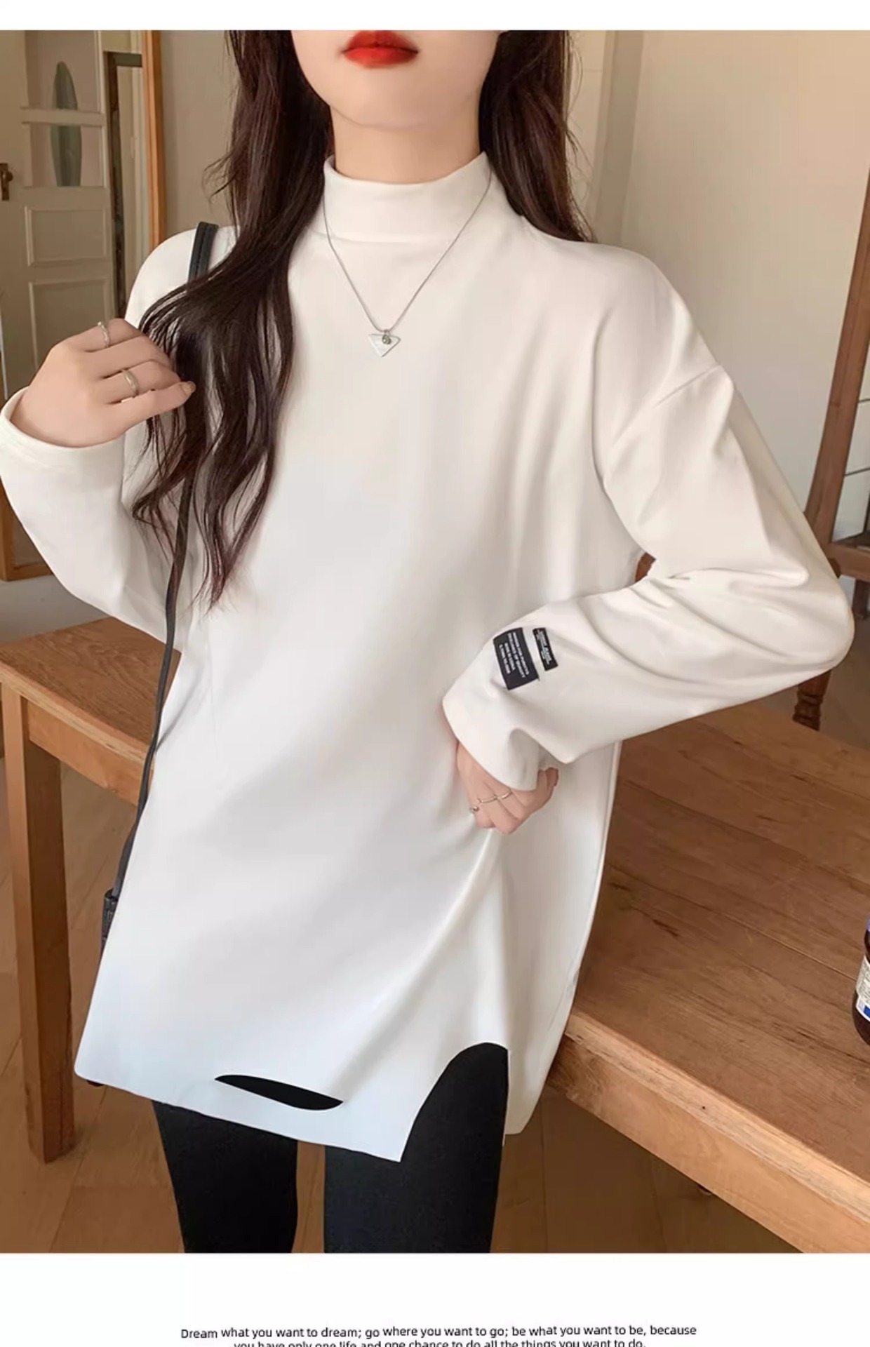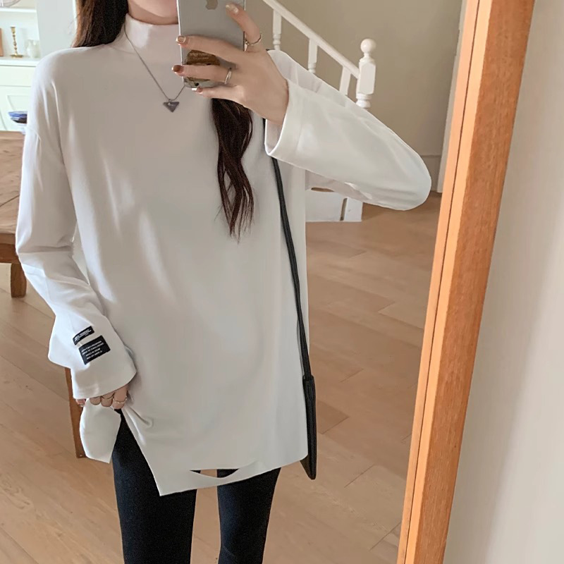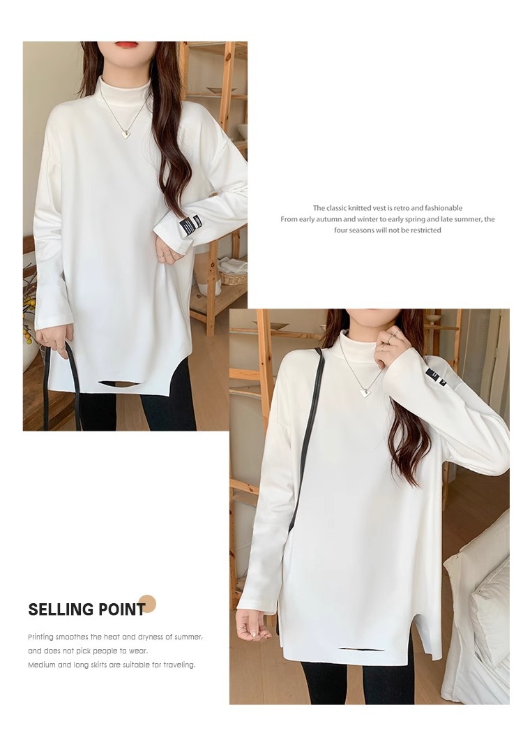 드 벨벳 터틀넥 바닥 셔츠 여성의 가을과 겨울 서양식 내부 티셔츠 스택 흰색 티셔츠 긴 칫솔질 두꺼운 탑 패션스토어 가기