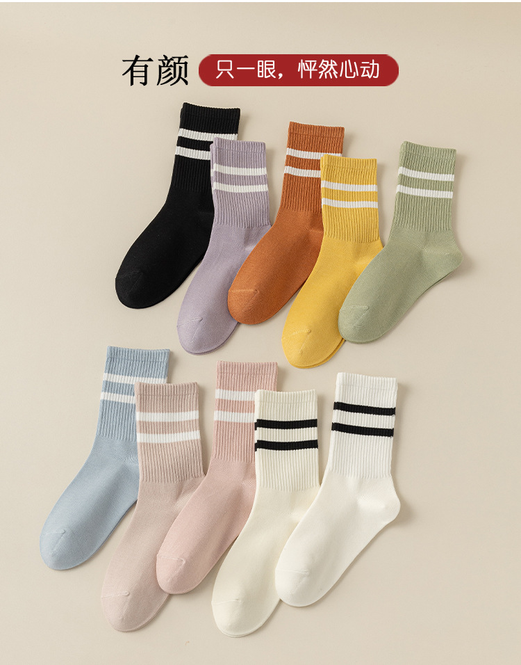 양말 순수 코튼 여성 봄, 여름 중반 송아지 양말 여성 코튼 평행 바 스트라이프 캐주얼 스포츠 코튼 양말 Zhuji 여성 양말 도매