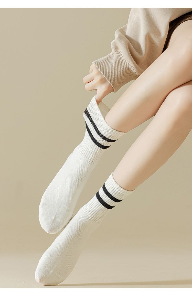 양말 순수 코튼 여성 봄, 여름 중반 송아지 양말 여성 코튼 평행 바 스트라이프 캐주얼 스포츠 코튼 양말 Zhuji 여성 양말 도매스토어 가기