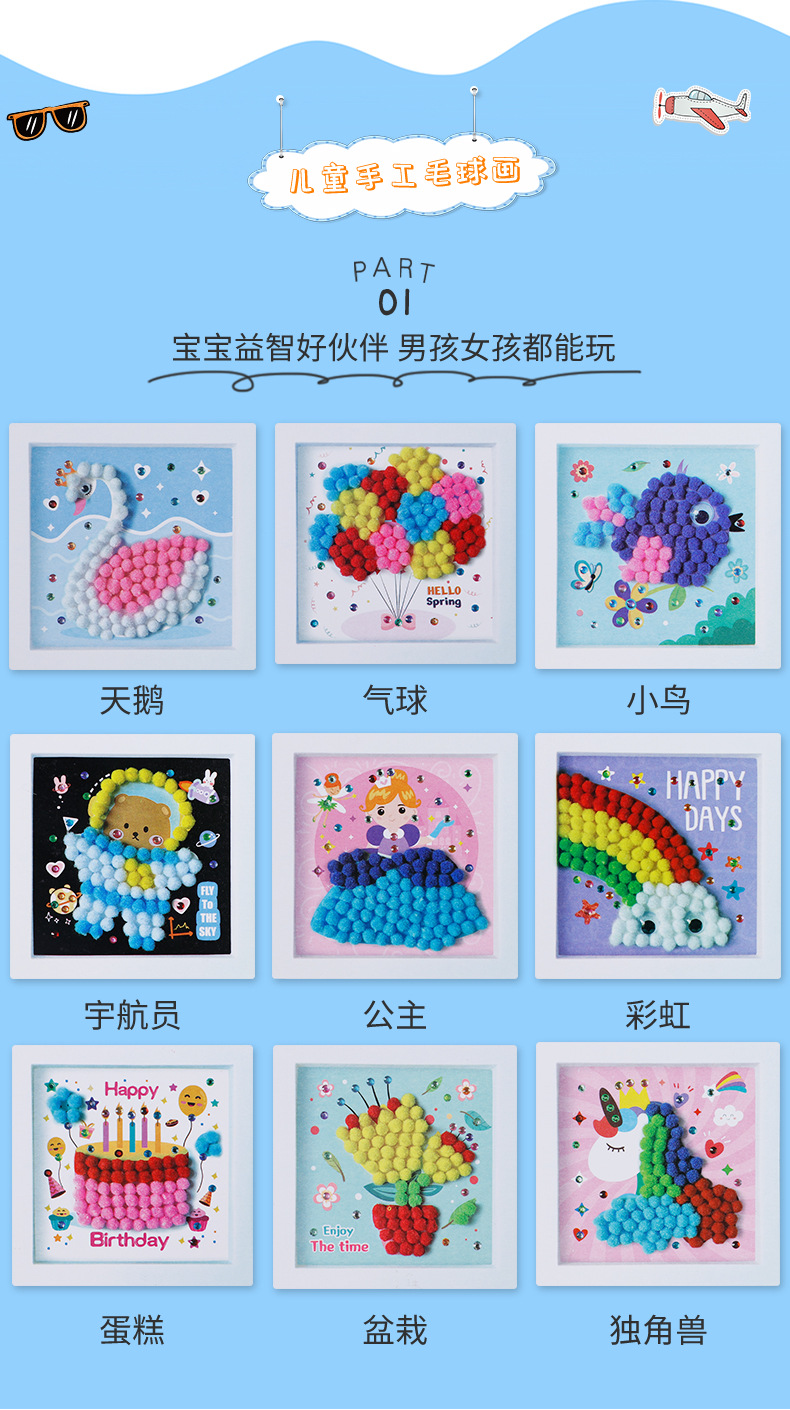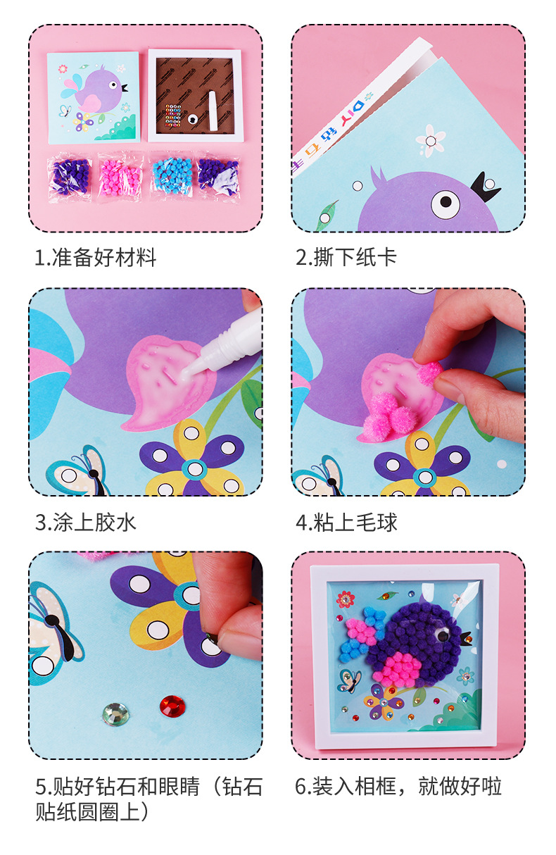 새로운 국경일 어린이 장난감 스티커 그림 유치원 DIY 생산 재료 크리 에이 티브 소녀 모피 공 스티커 그림스토어 가기