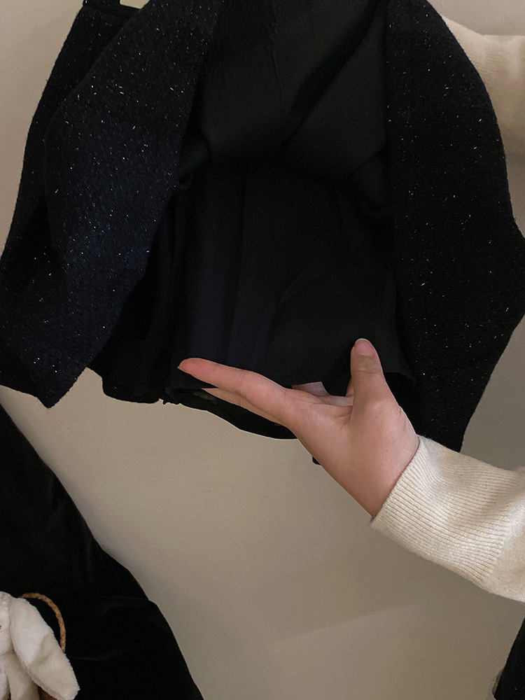 소녀 한국 스타일의 주름 구슬 절묘한 세트 2023 겨울 퀼트 샤넬 스타일 코트 세련된 주름 치마스토어 가기
