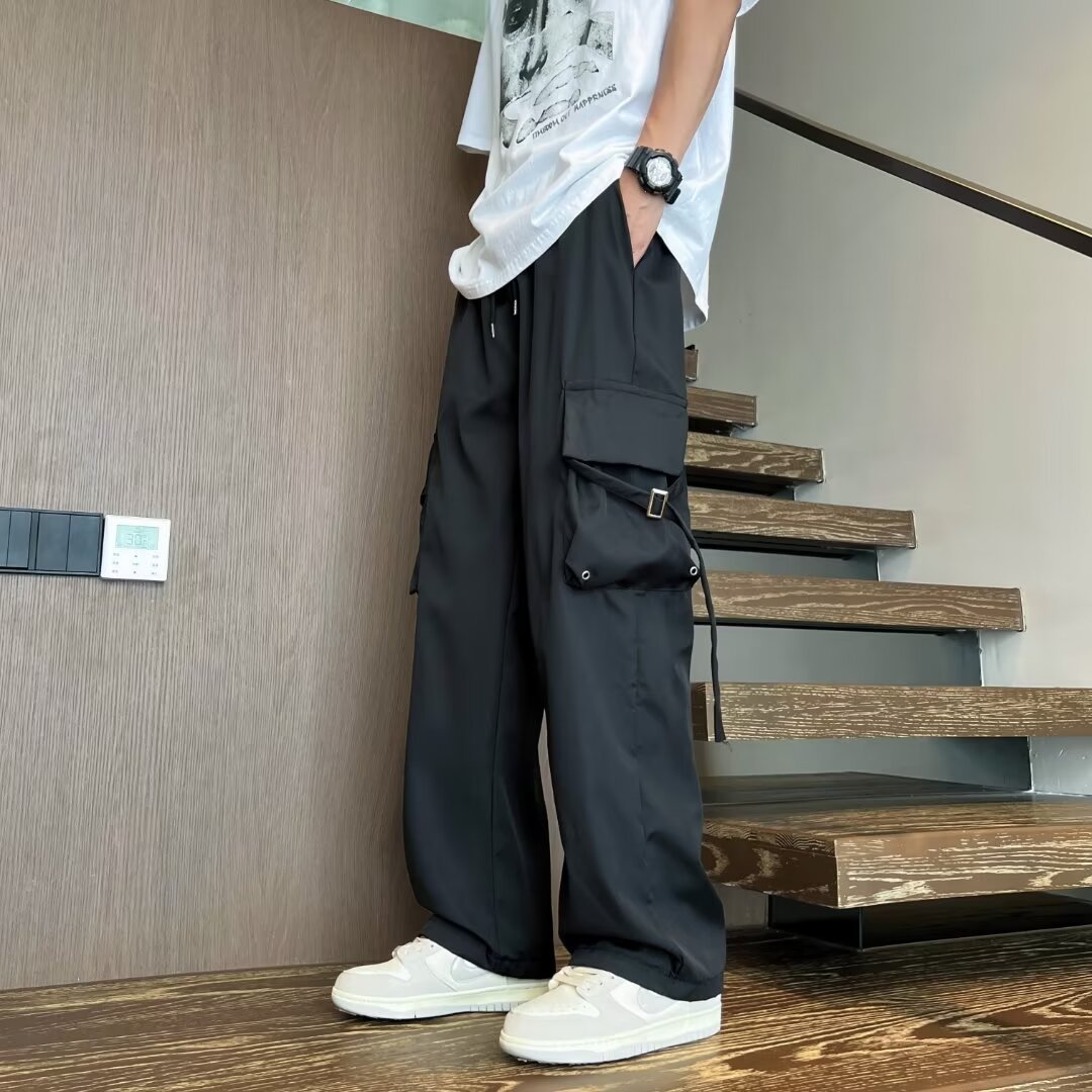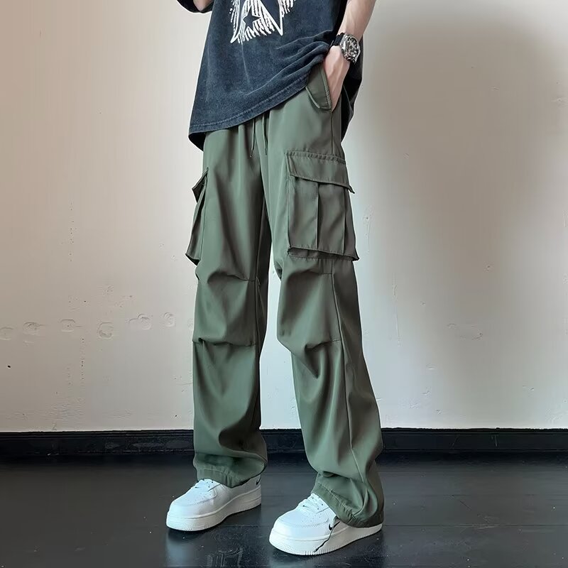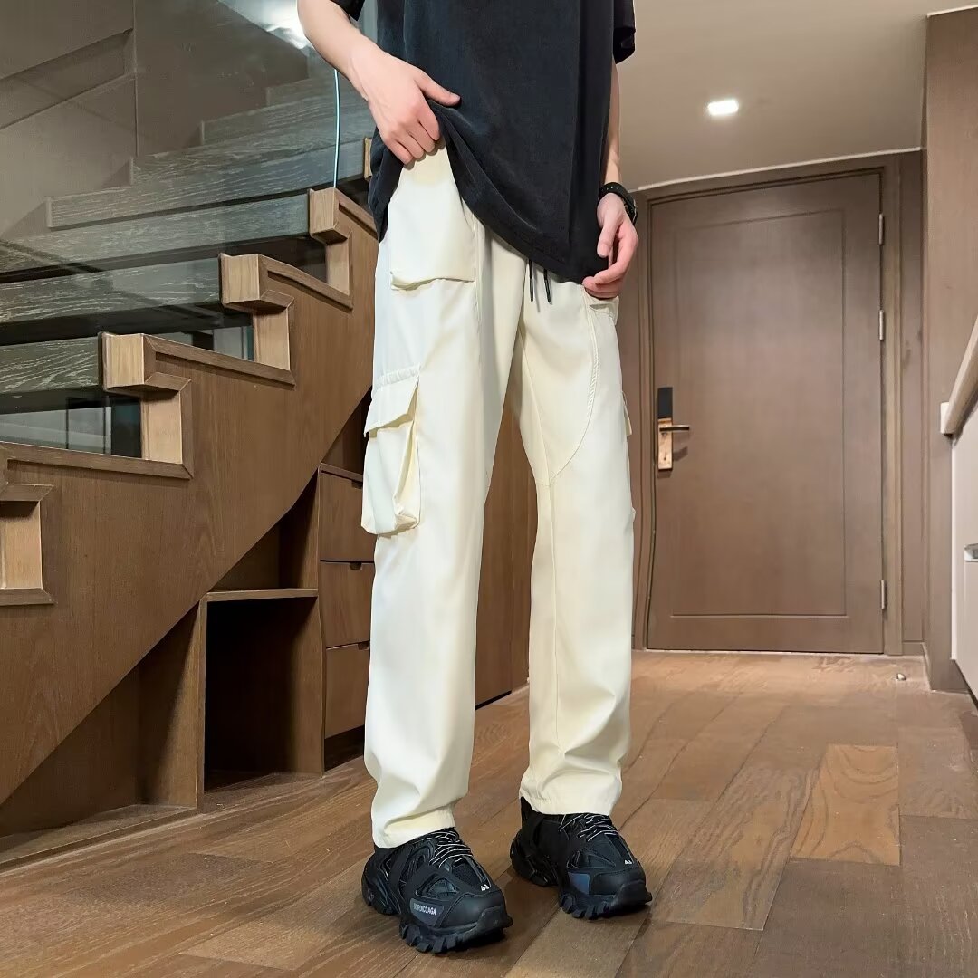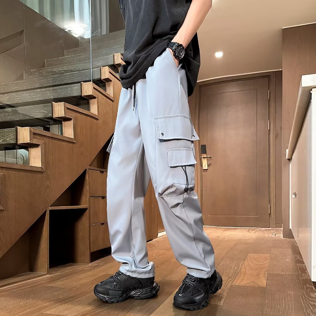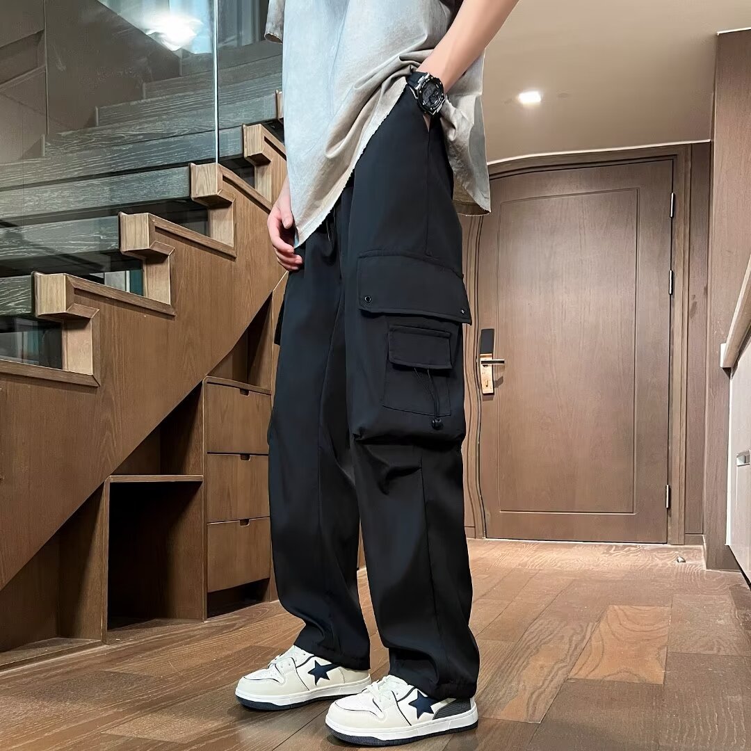 2025년형 하이웨이스트 카고 팬츠 남성 청소년용 긴바지 통기성 내마모성 기모 가공 오리지널 청소년 바지 남성용