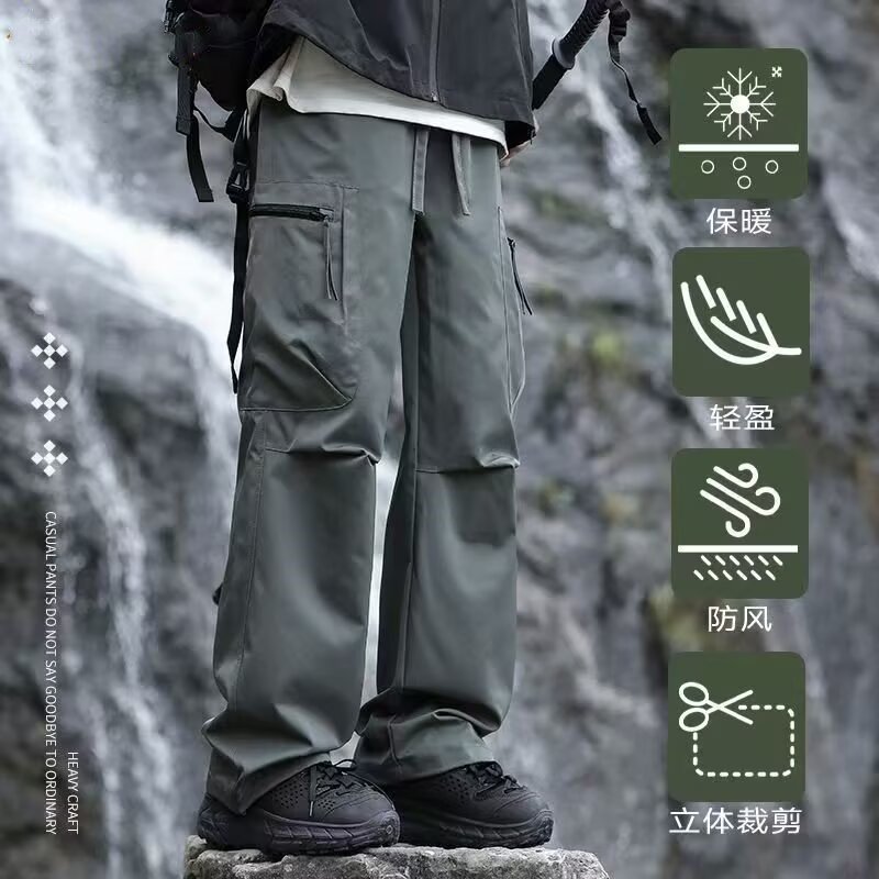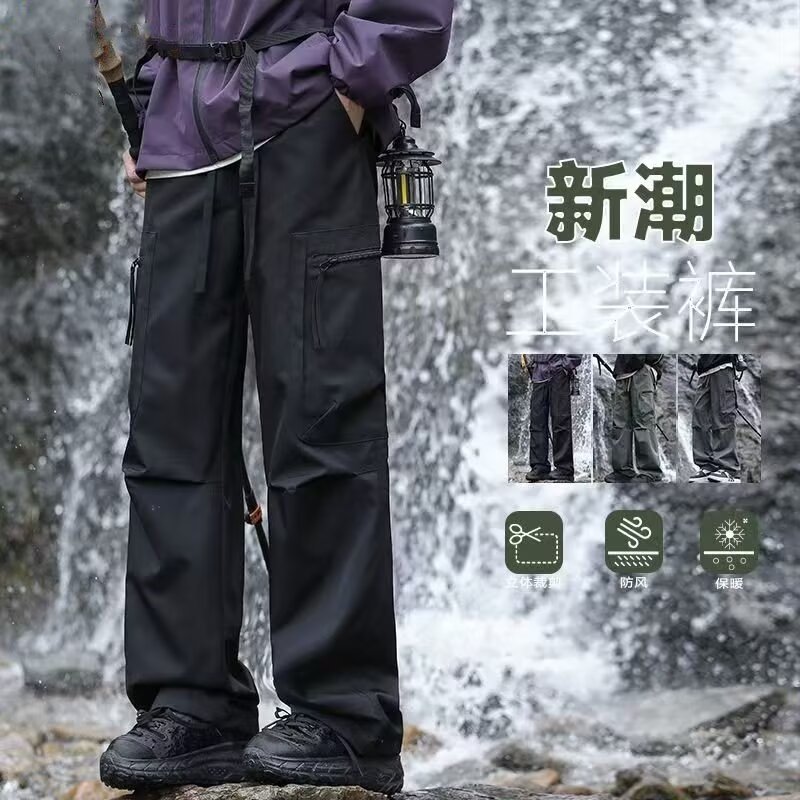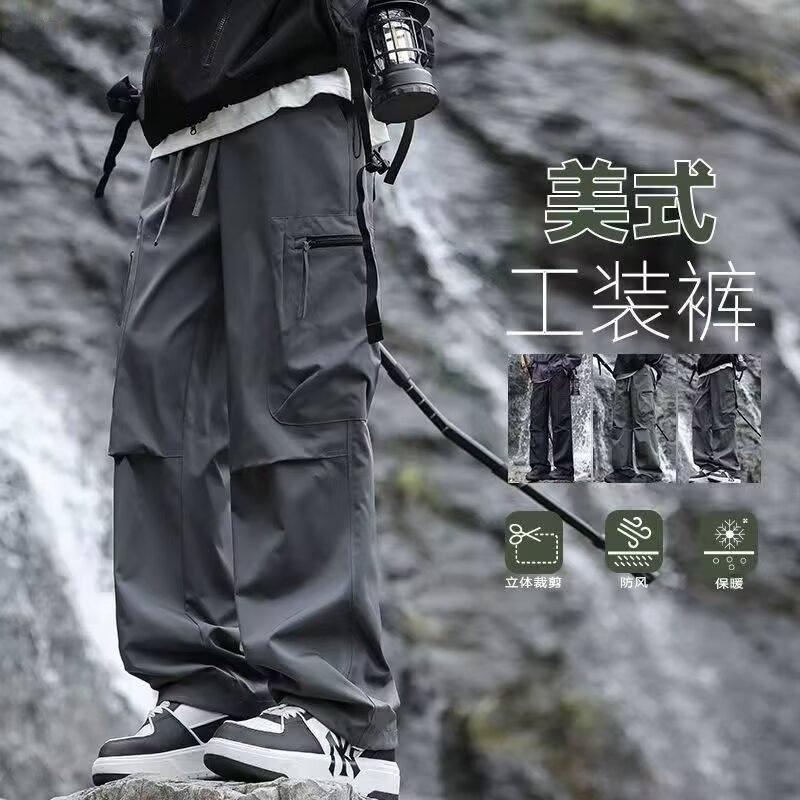 2025년형 하이웨이스트 카고 팬츠 남성 청소년용 긴바지 통기성 내마모성 기모 가공 오리지널 청소년 바지 남성용스토어 가기