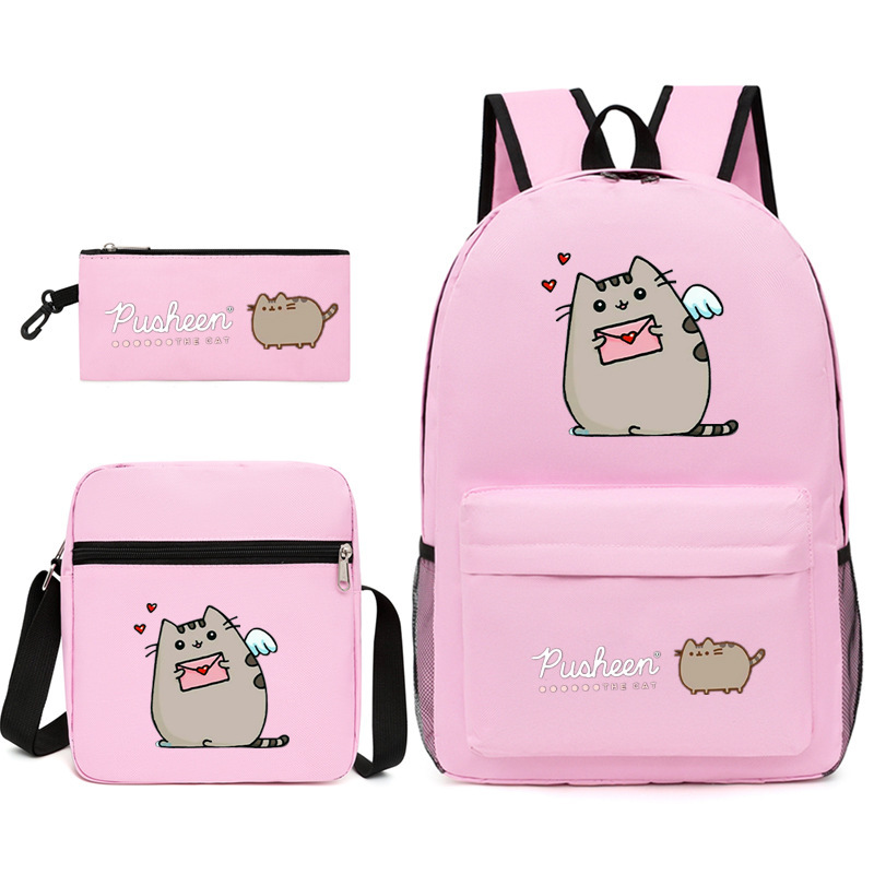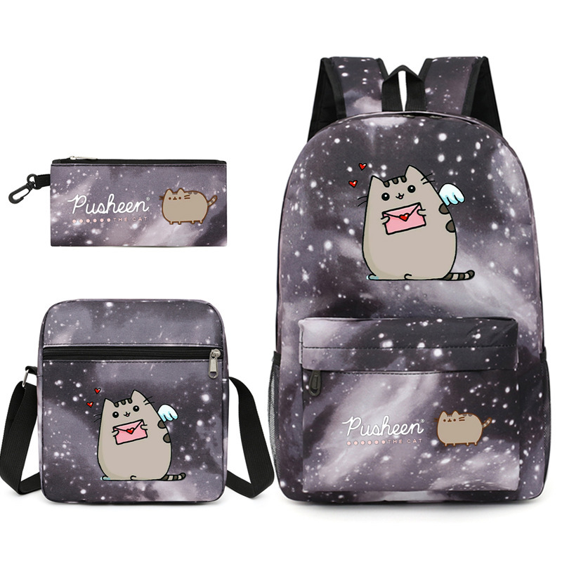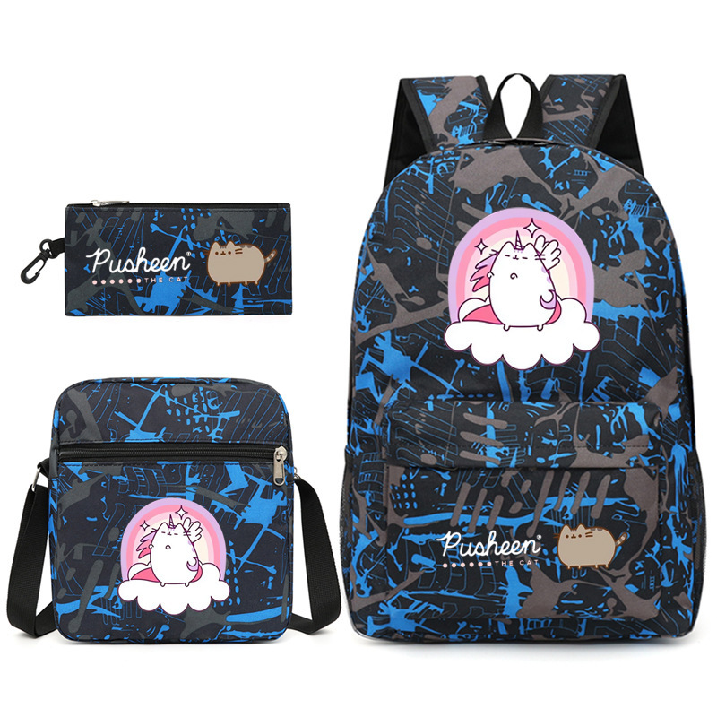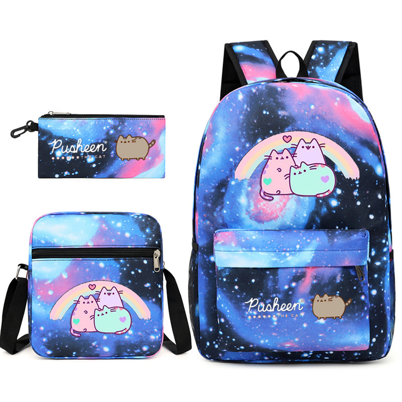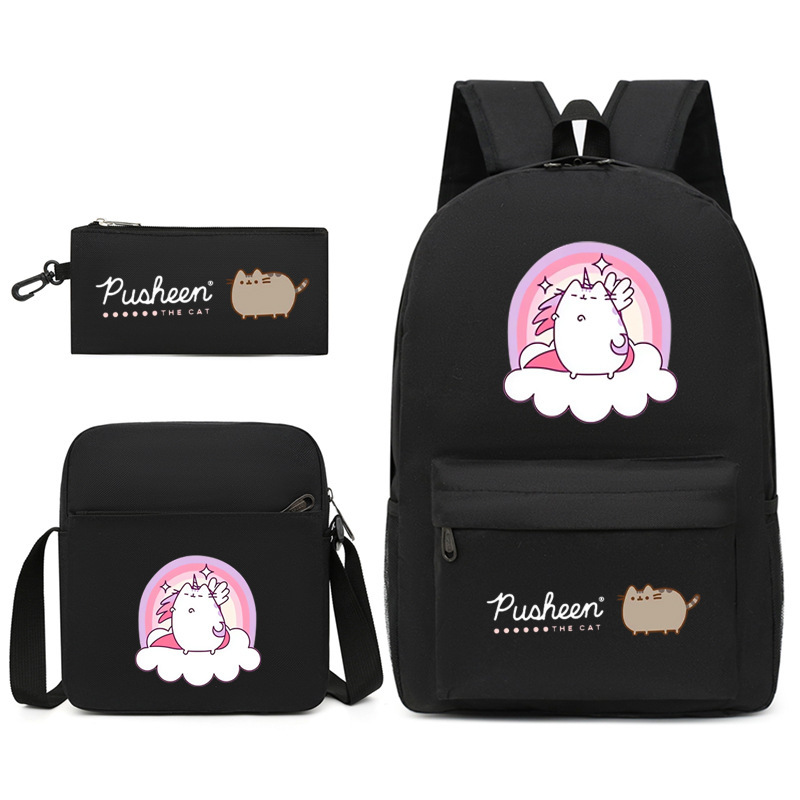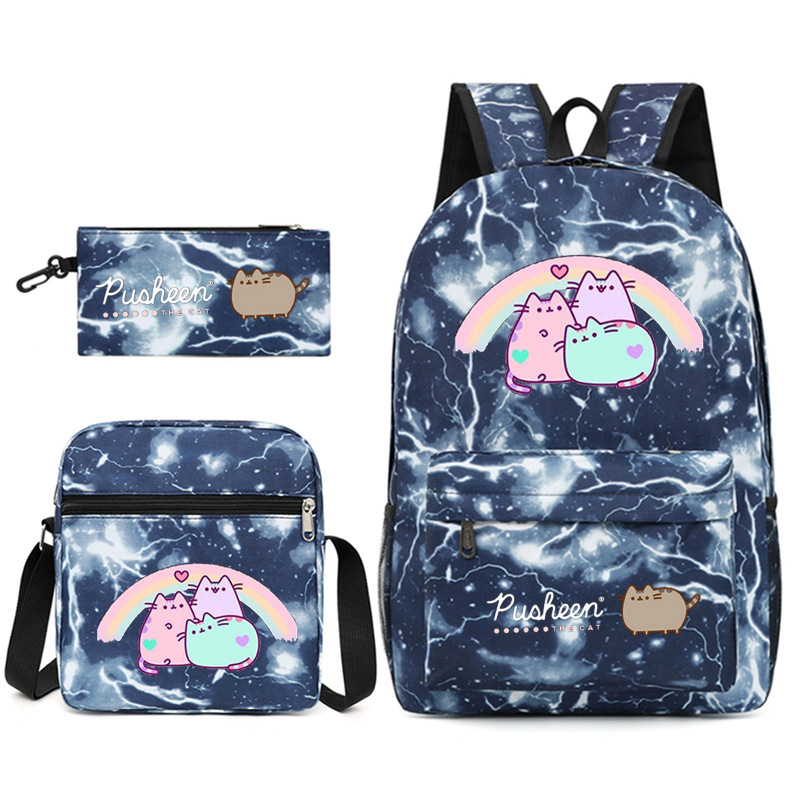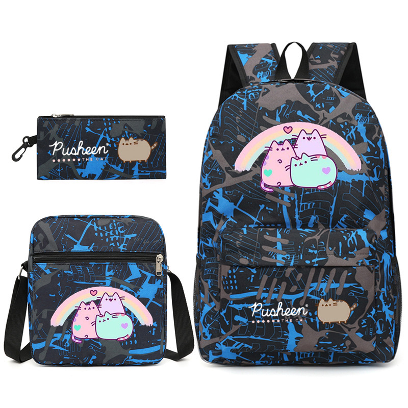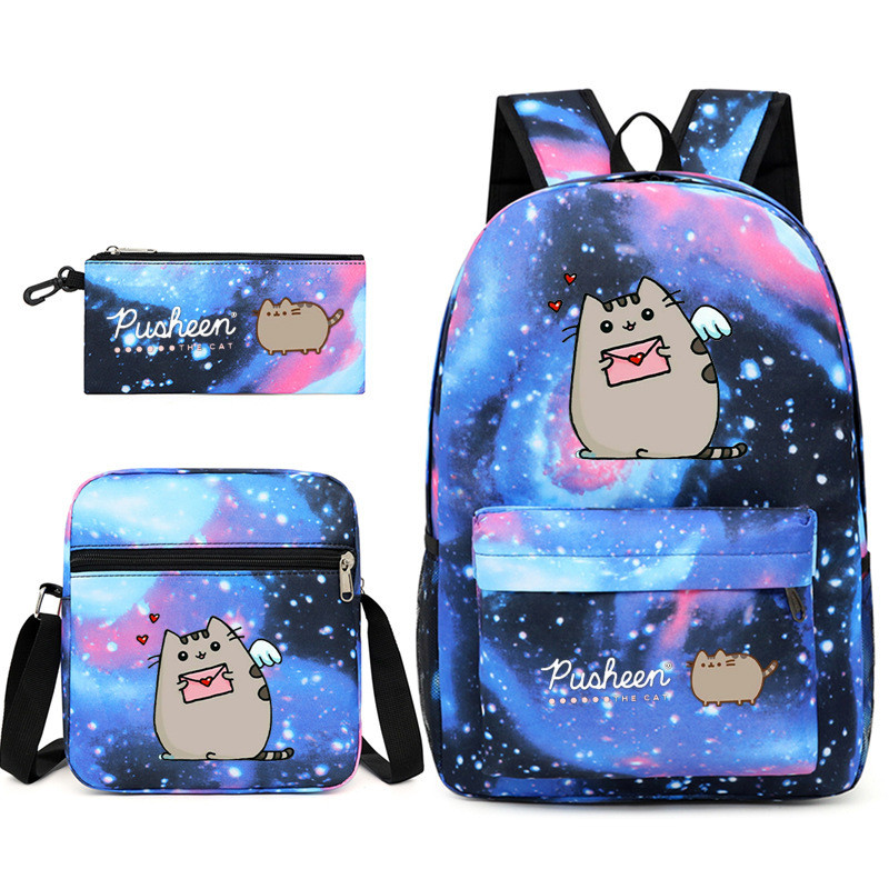 Pusheen 지방 Chihuahua 3 종 책가방 캐주얼 남성과 여성 학생 배낭 인쇄 대용량 야외 배낭스토어 가기