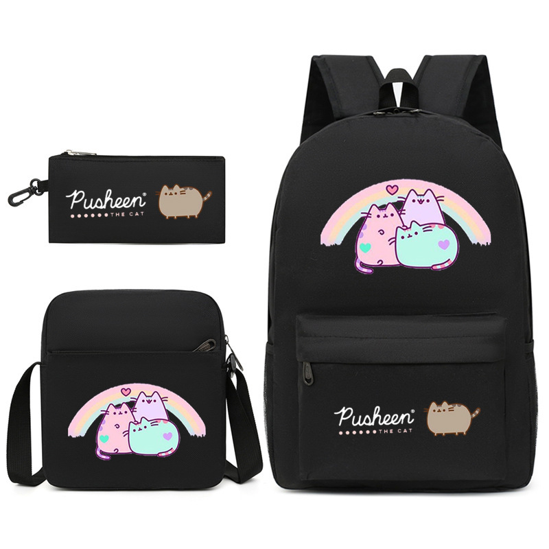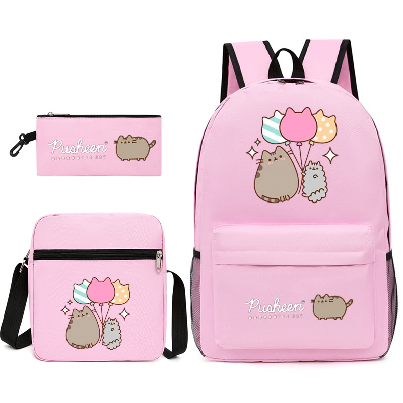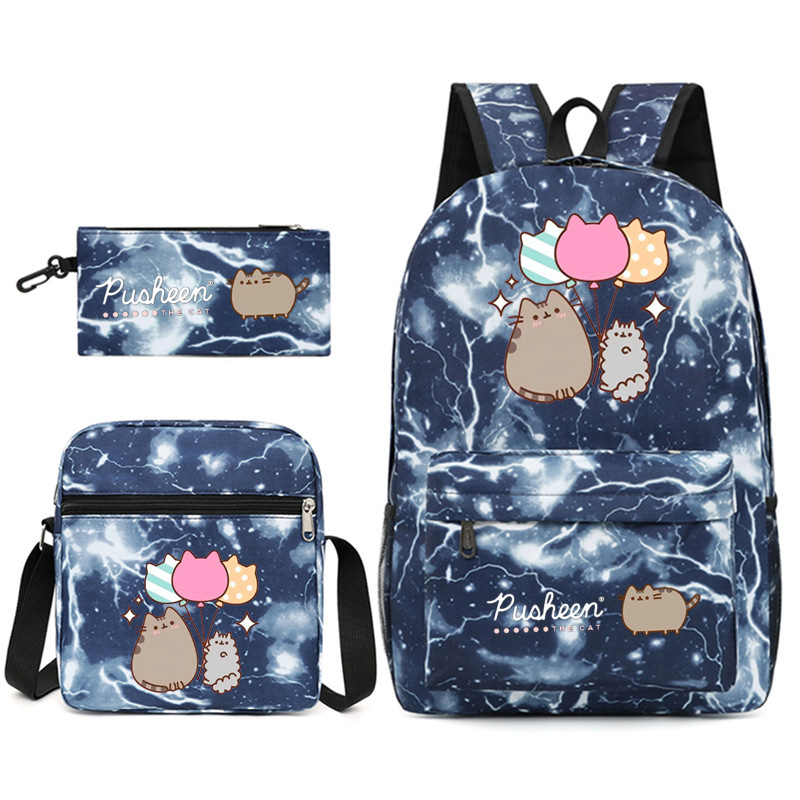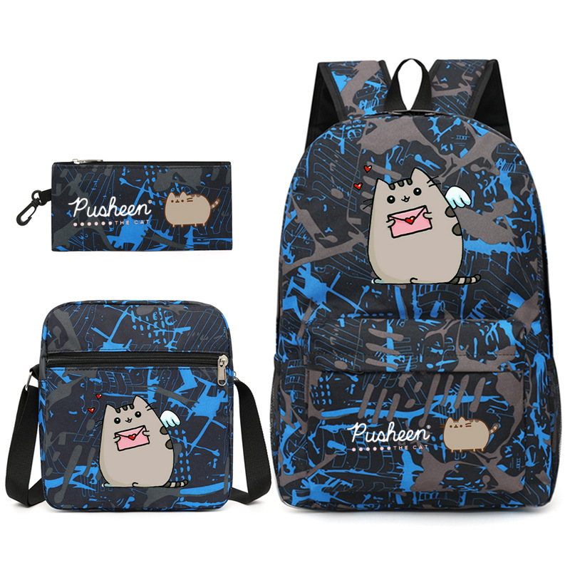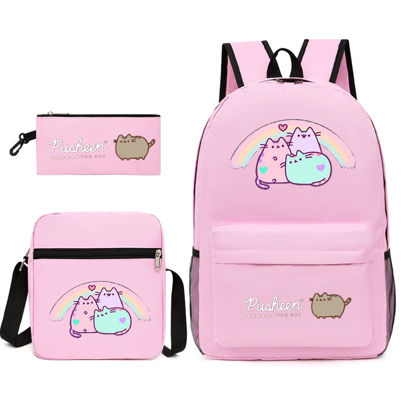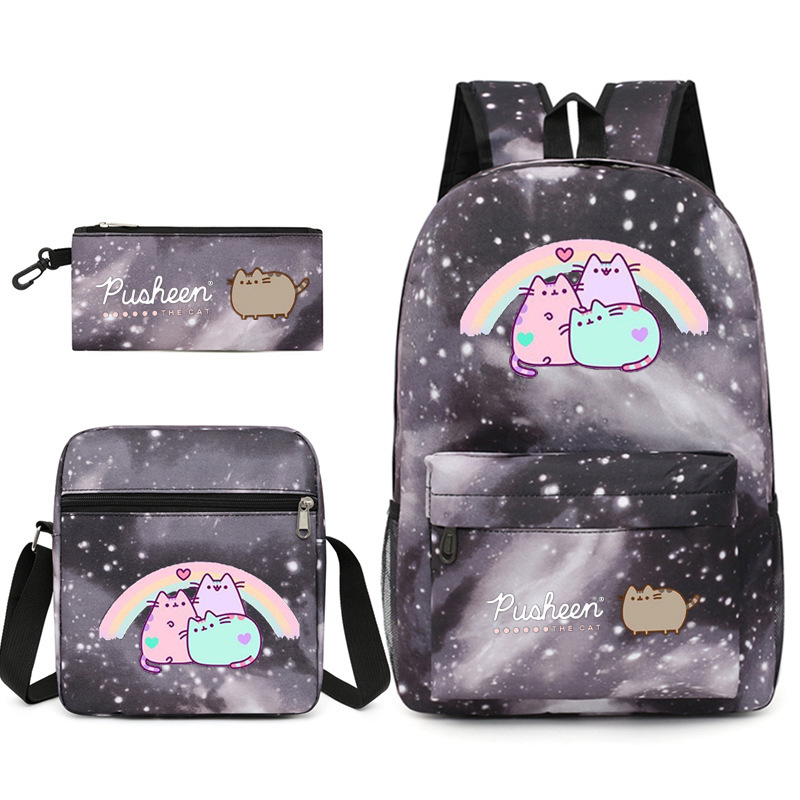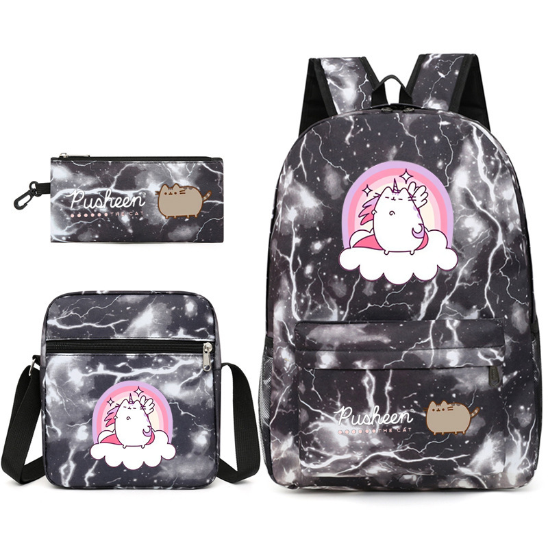 Pusheen 지방 Chihuahua 3 종 책가방 캐주얼 남성과 여성 학생 배낭 인쇄 대용량 야외 배낭스토어 가기