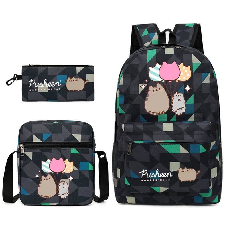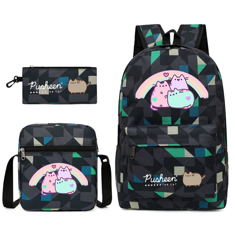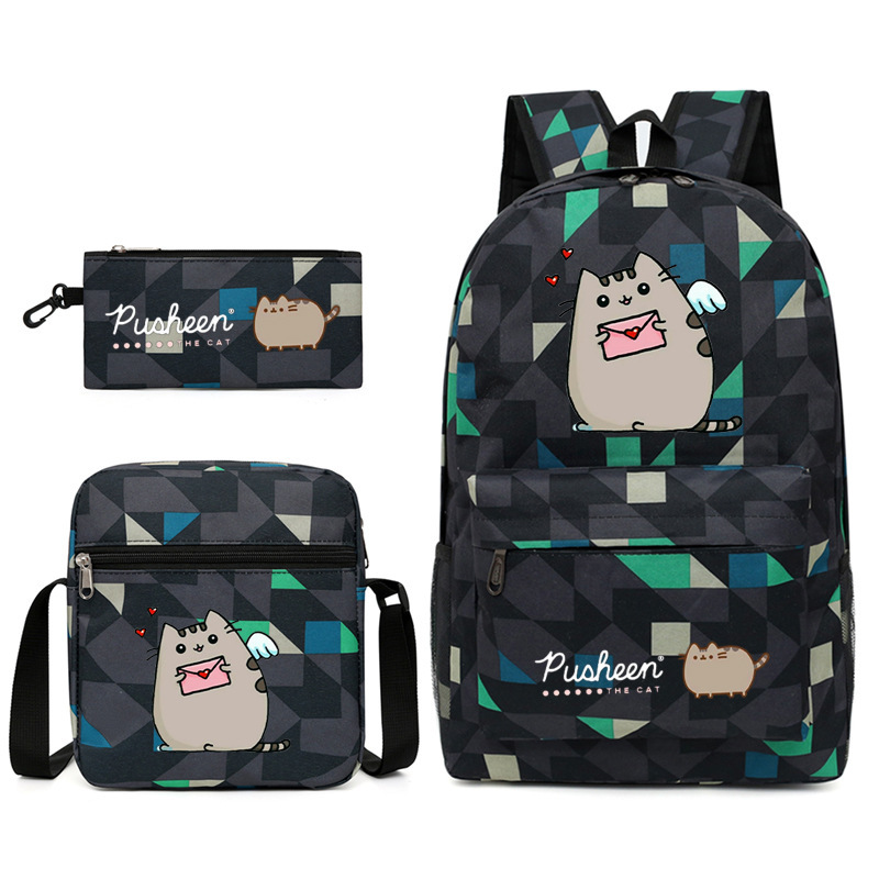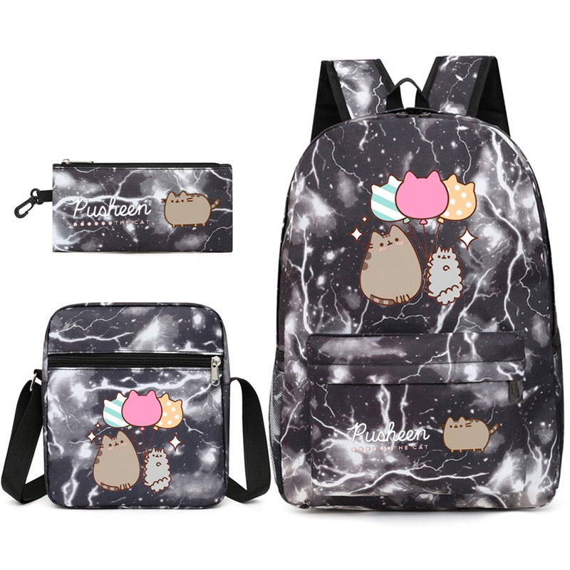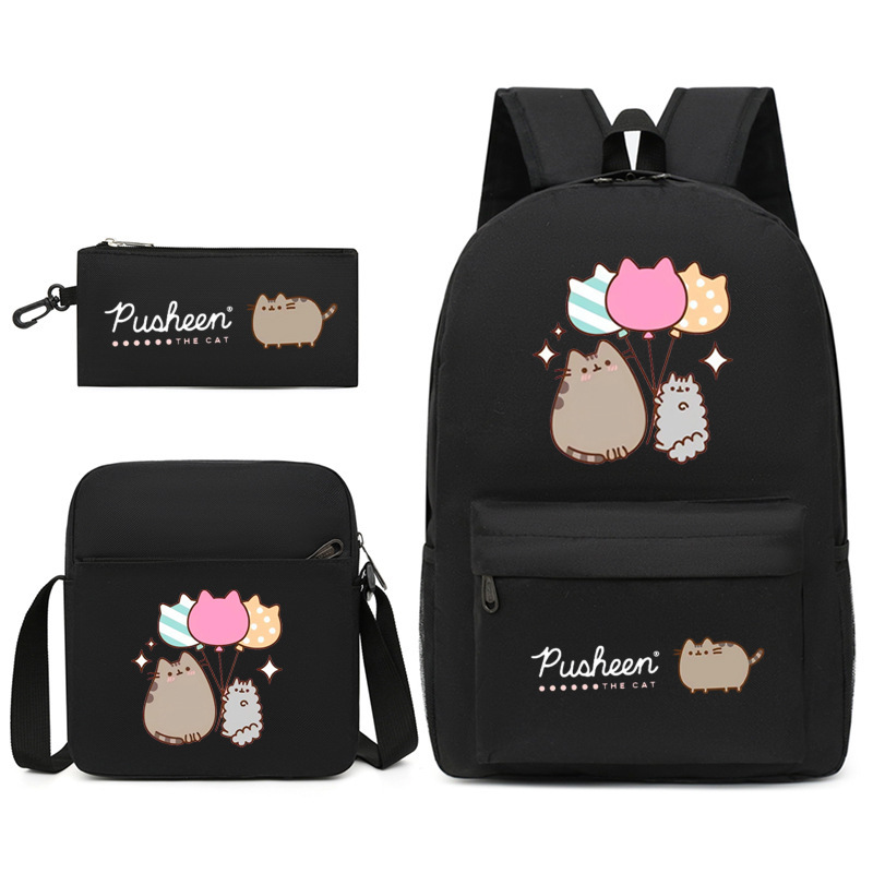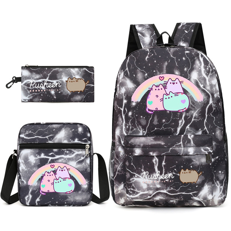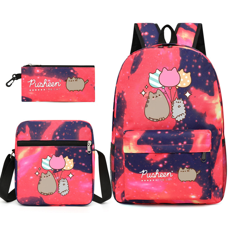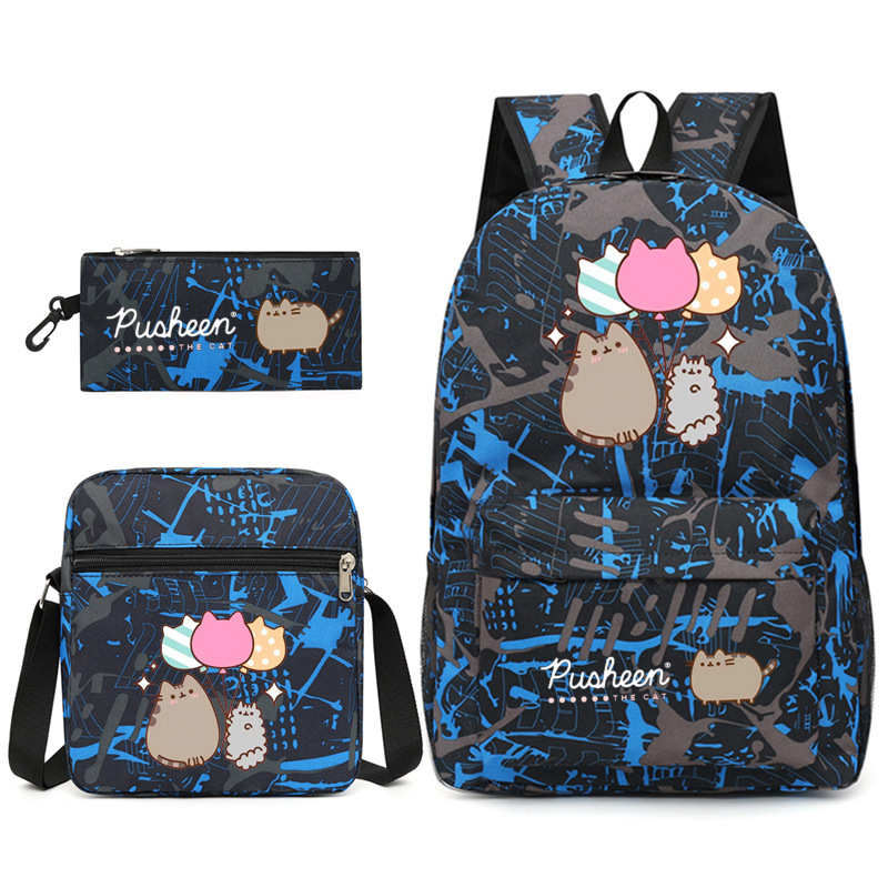 Pusheen 지방 Chihuahua 3 종 책가방 캐주얼 남성과 여성 학생 배낭 인쇄 대용량 야외 배낭스토어 가기