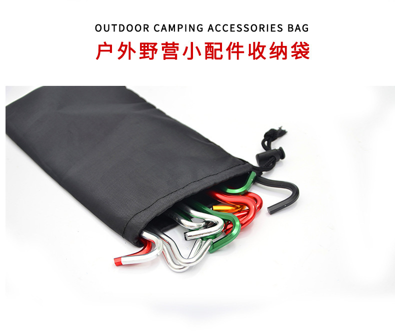 用途:收纳23厘米以内的地钉,登山扣、风绳扣、风绳、小地钉、甲板地钉、晾衣绳等户外小配件的整理收纳。
