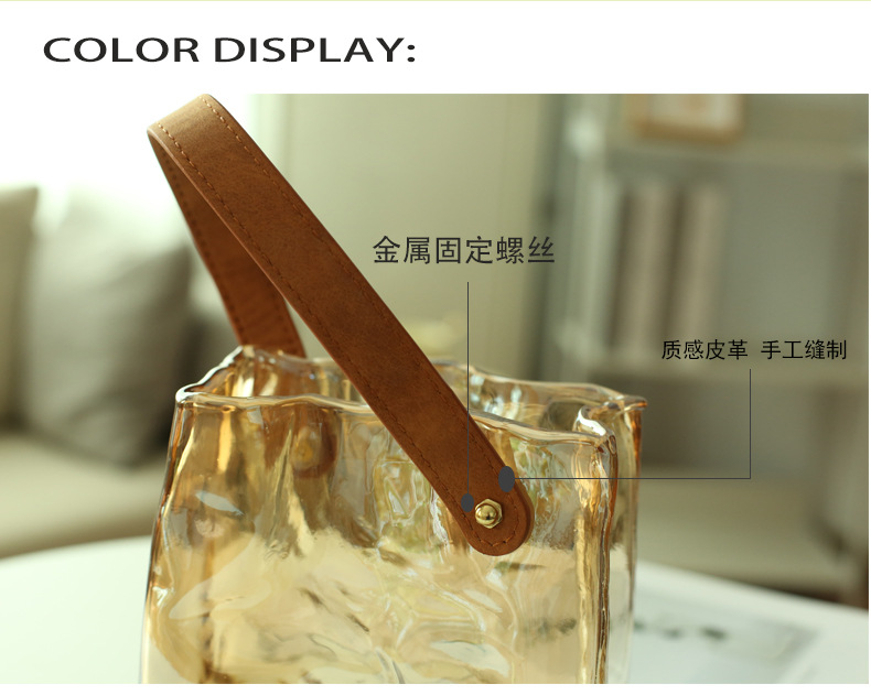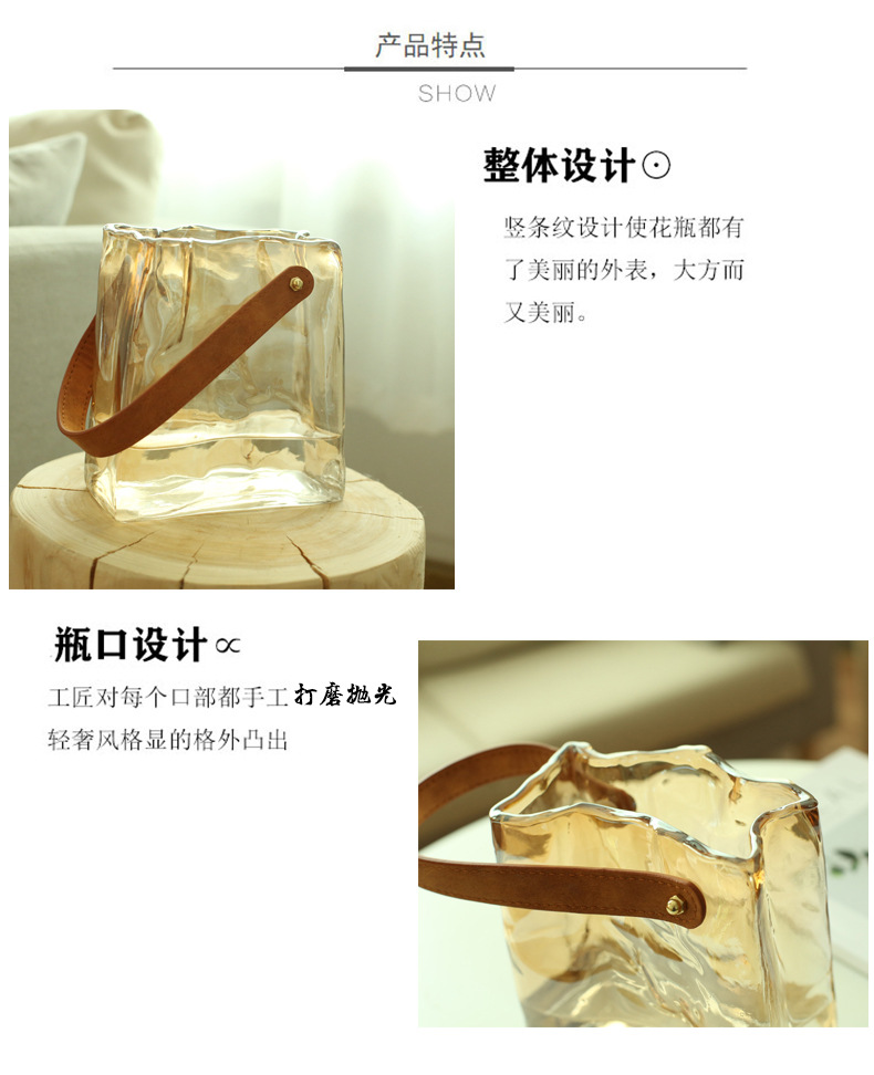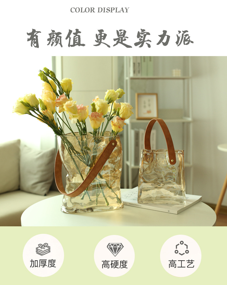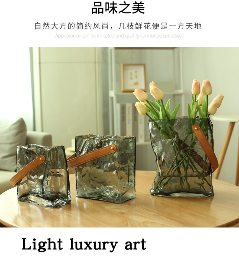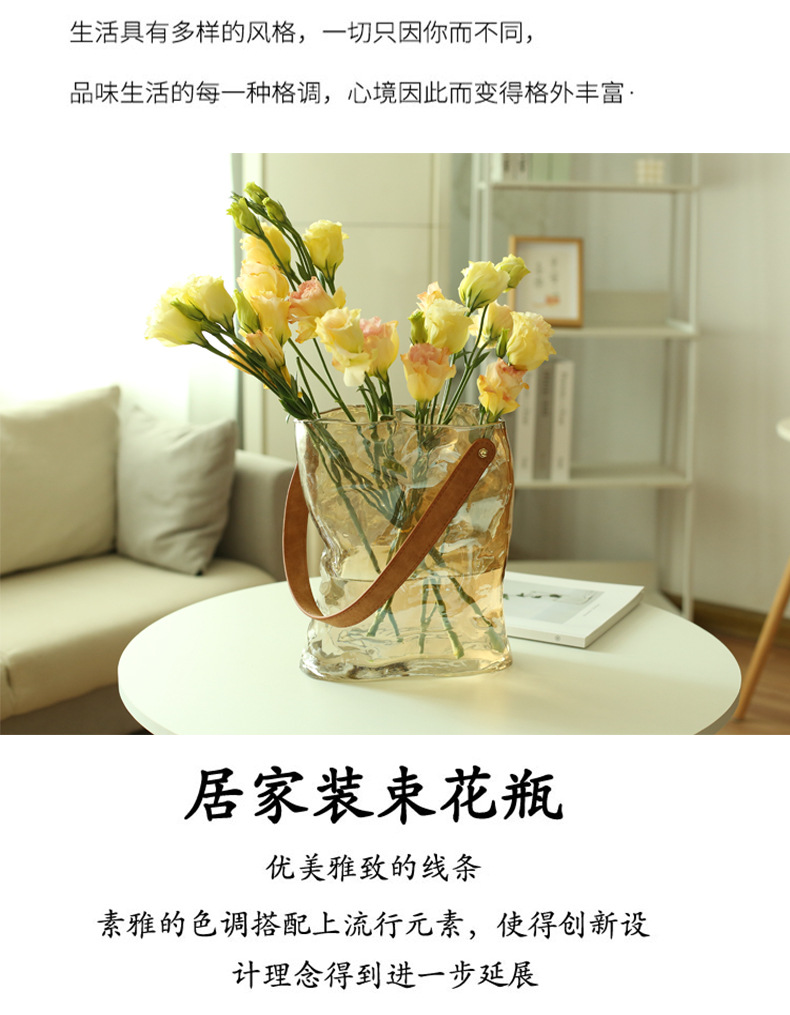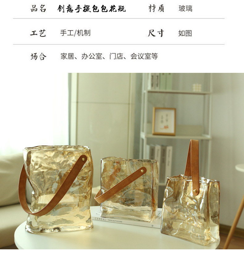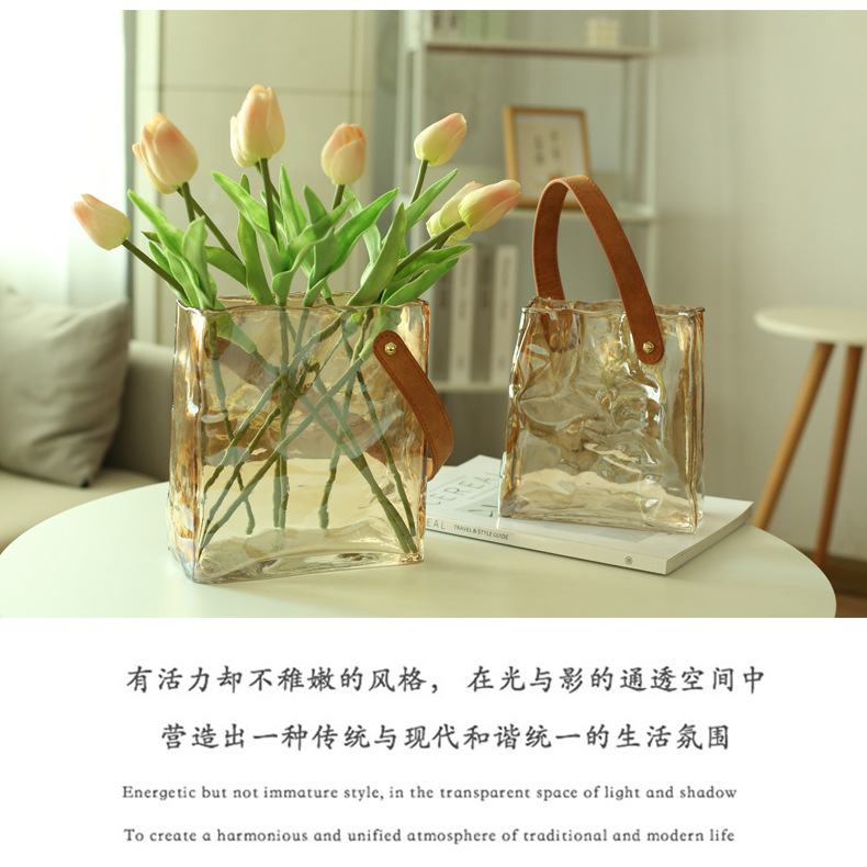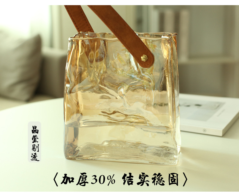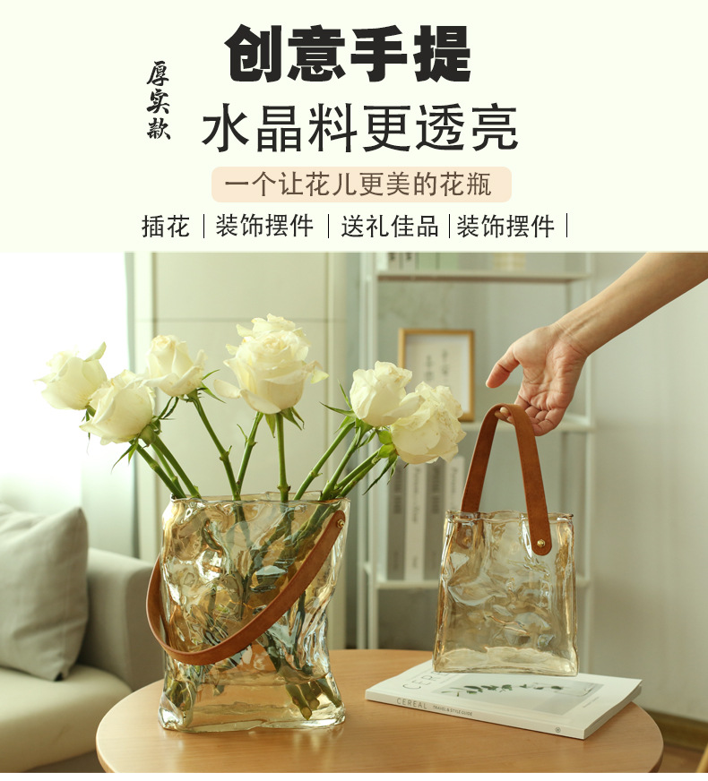 고급 꽃병 유리 투명 창조적 인 수경 꽃 장미 거실 장식 꽃꽂이 핸드백 두꺼운 꽃 장치