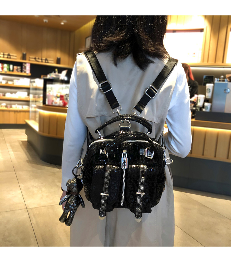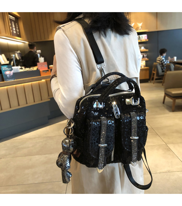 2025 새로운 패션 여성 가방 휴대용 배낭 다목적 스팽글 메신저 가방 유행 한국어 버전 다목적 기질 어깨 가방스토어 가기
