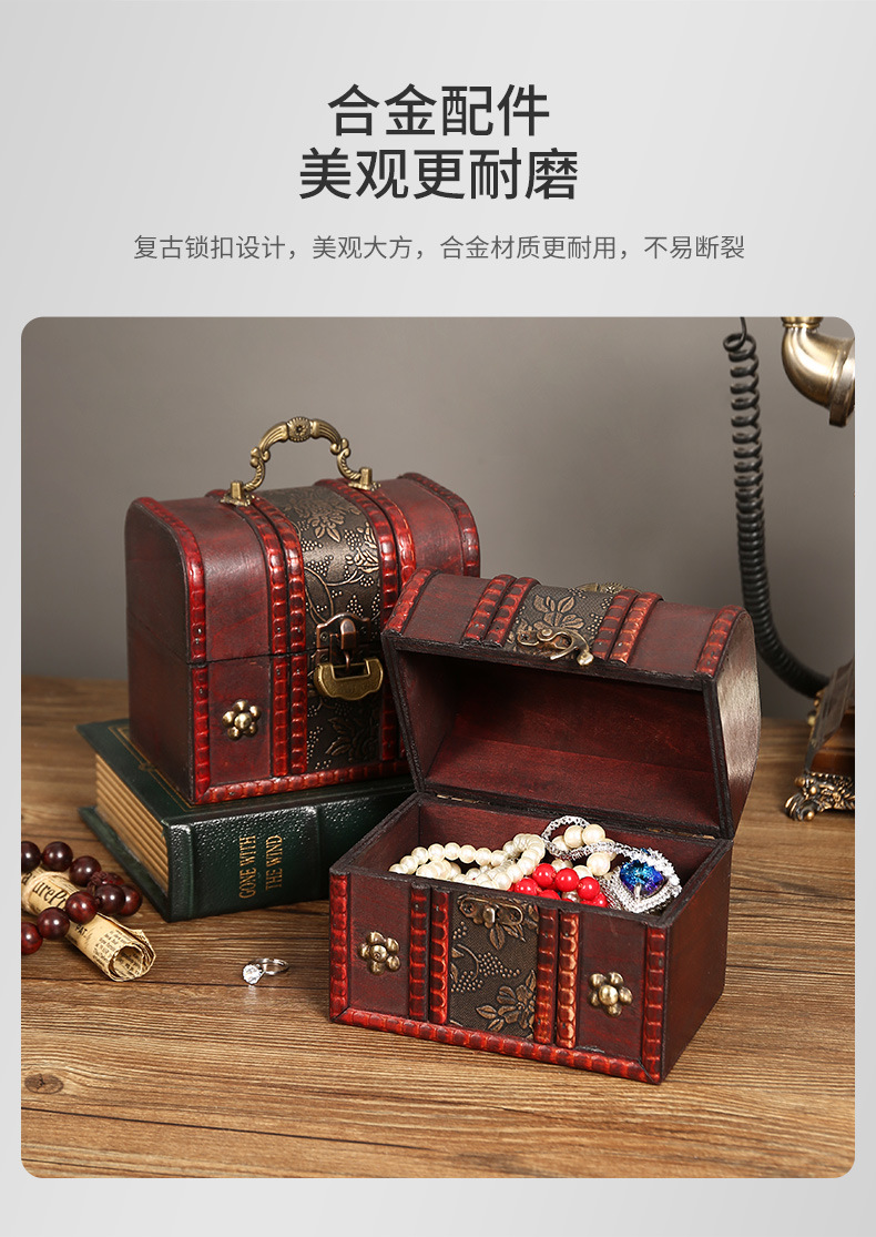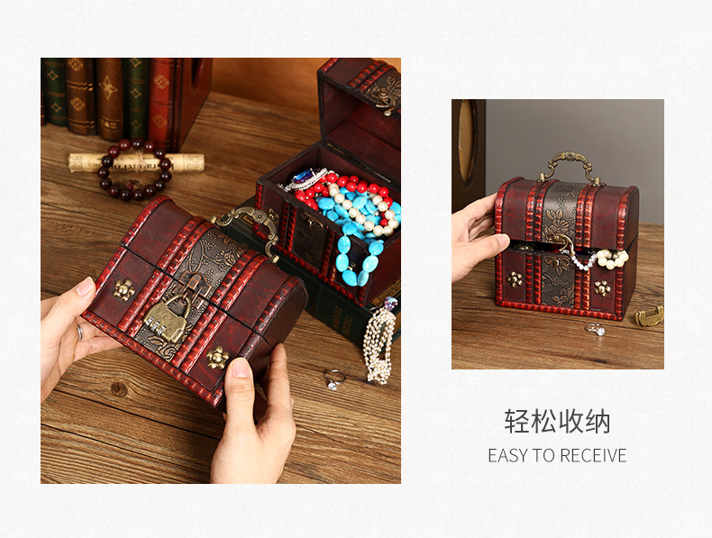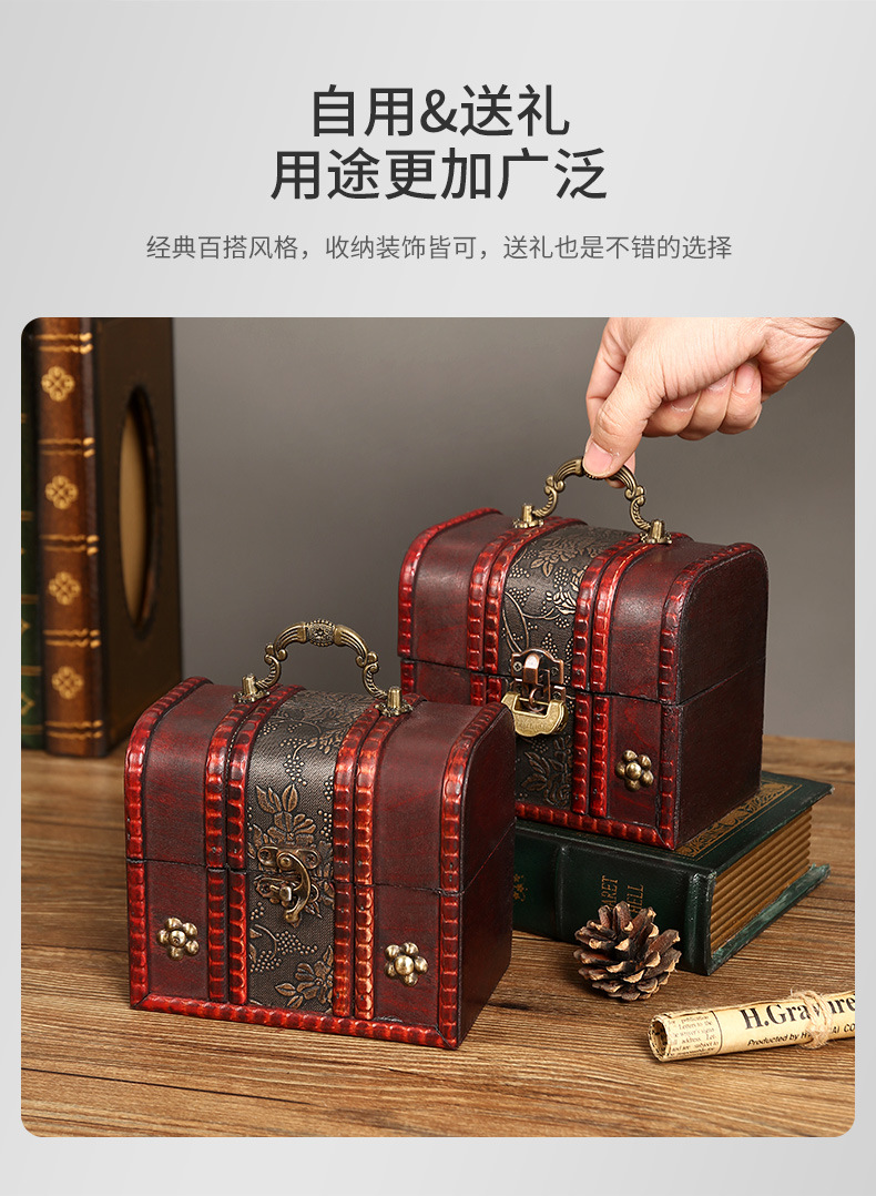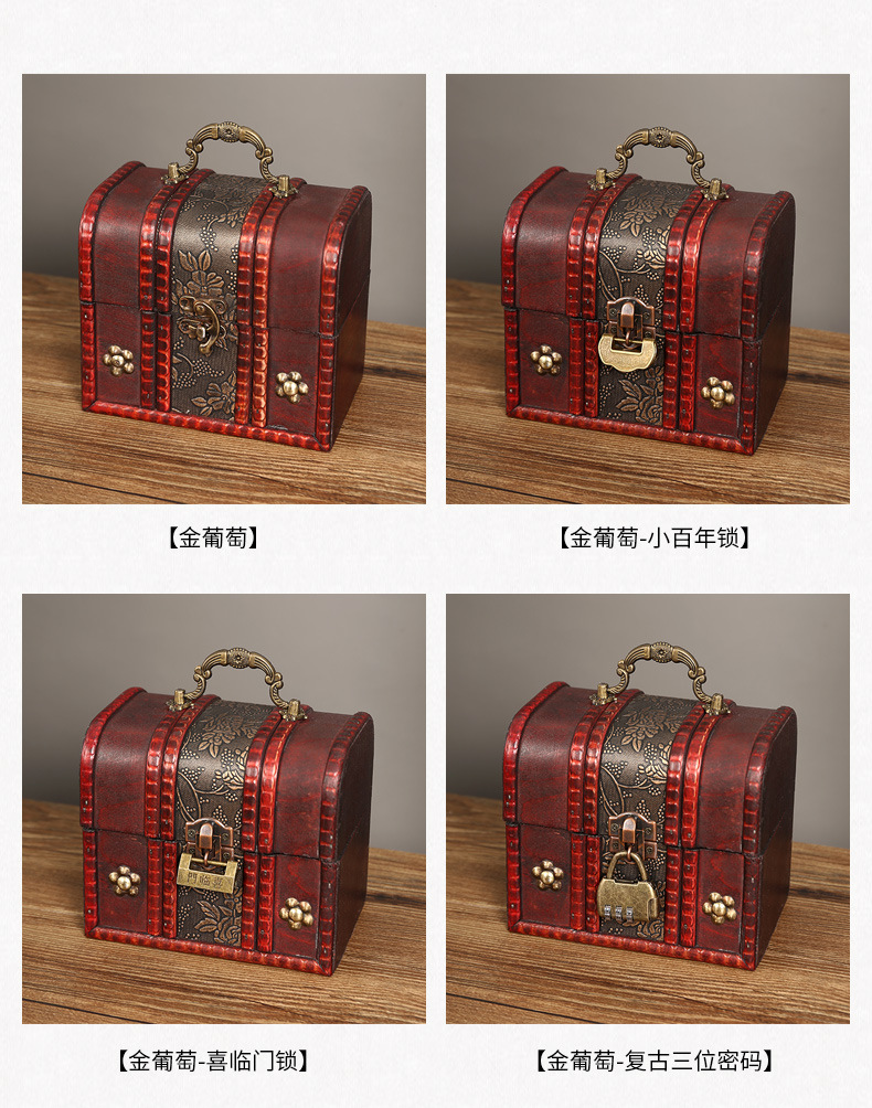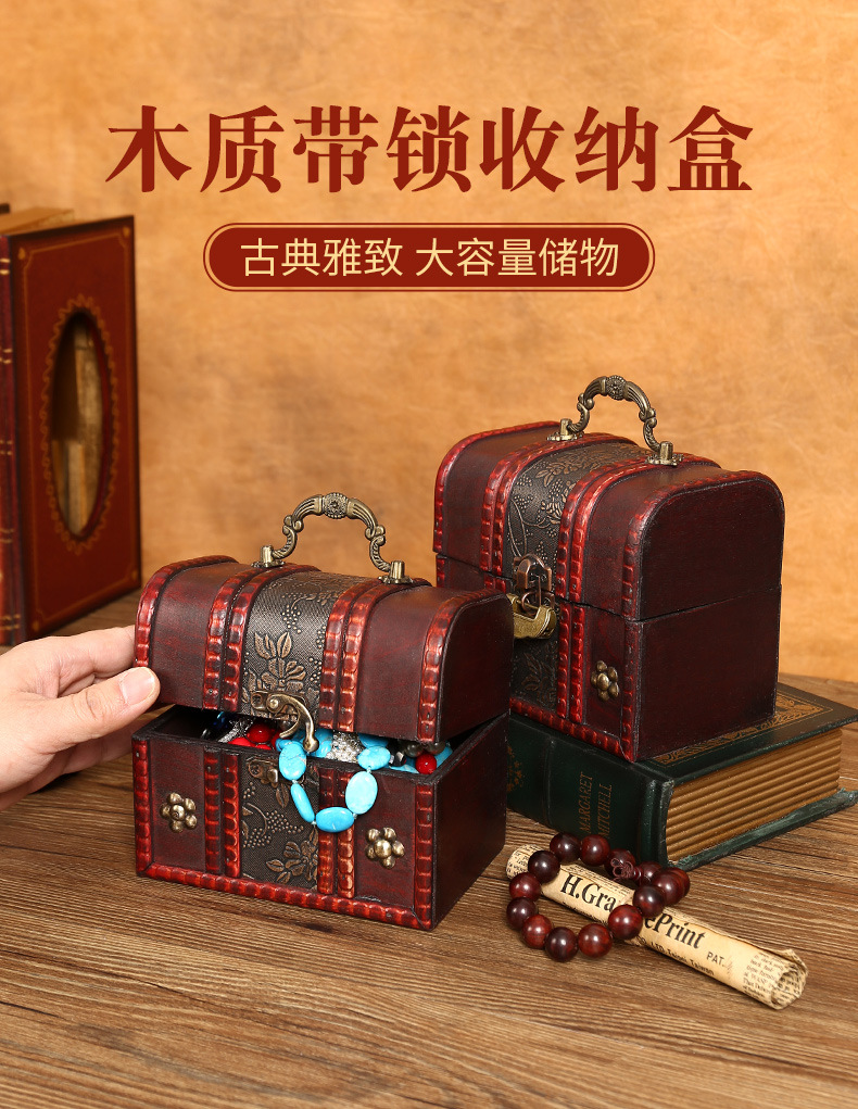 새로운 고전적인 나무 저장 상자 잠금 창조적 인 선물 포장 나무 상자 핸들 보석 데스크탑 저장