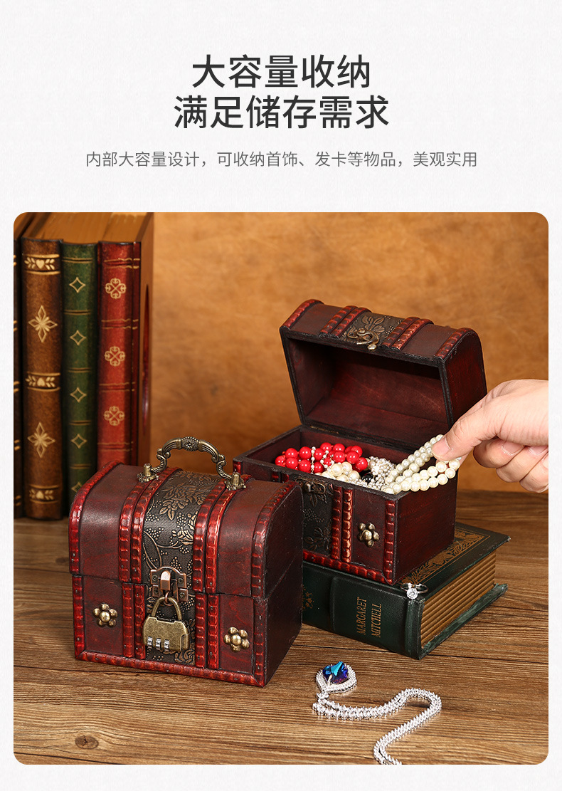 새로운 고전적인 나무 저장 상자 잠금 창조적 인 선물 포장 나무 상자 핸들 보석 데스크탑 저장스토어 가기