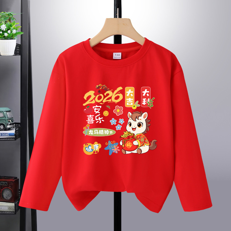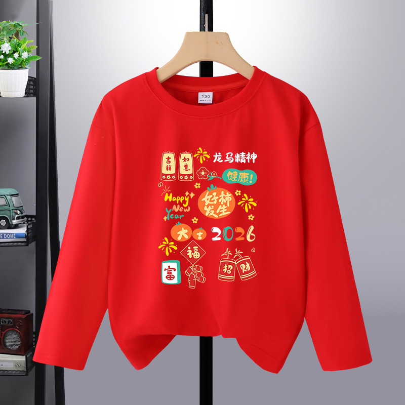 어린이 새해 옷 긴팔 티셔츠 순수 코튼 느슨한 생일 옷 드래곤과 피닉스 형제 자매 옷 소녀와 소년을위한 가을 옷