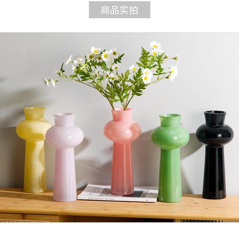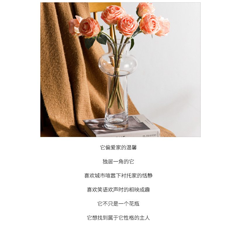 현대 간단한 높은 모양의 유리 꽃병 집 거실 수경 꽃 릴리 로즈 큰 꽃꽂이 장식품스토어 가기