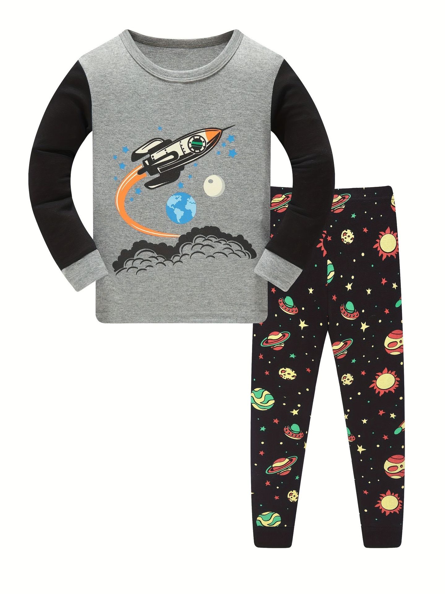 소년 파자마 어린이 파자마 긴 소매 스레드 면 에어컨 옷 홈 착용 소년 잠옷 원피스 배달스토어 가기