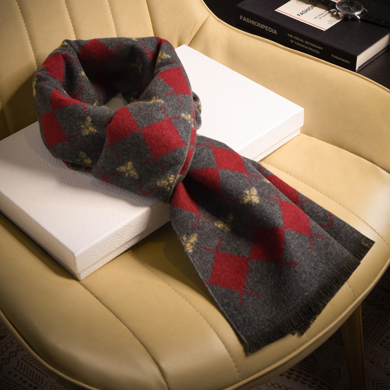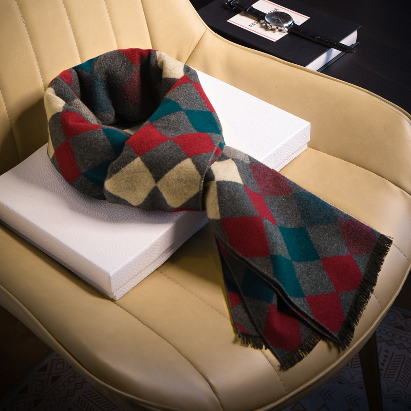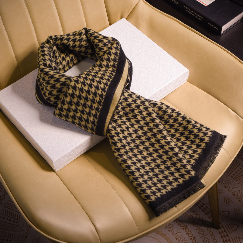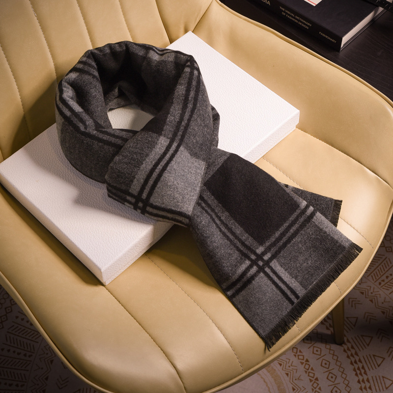 체크 무늬 울 남성용 스카프 2025 새로운 고급 모조 캐시미어 스카프 남자친구를 위한 겨울 선물