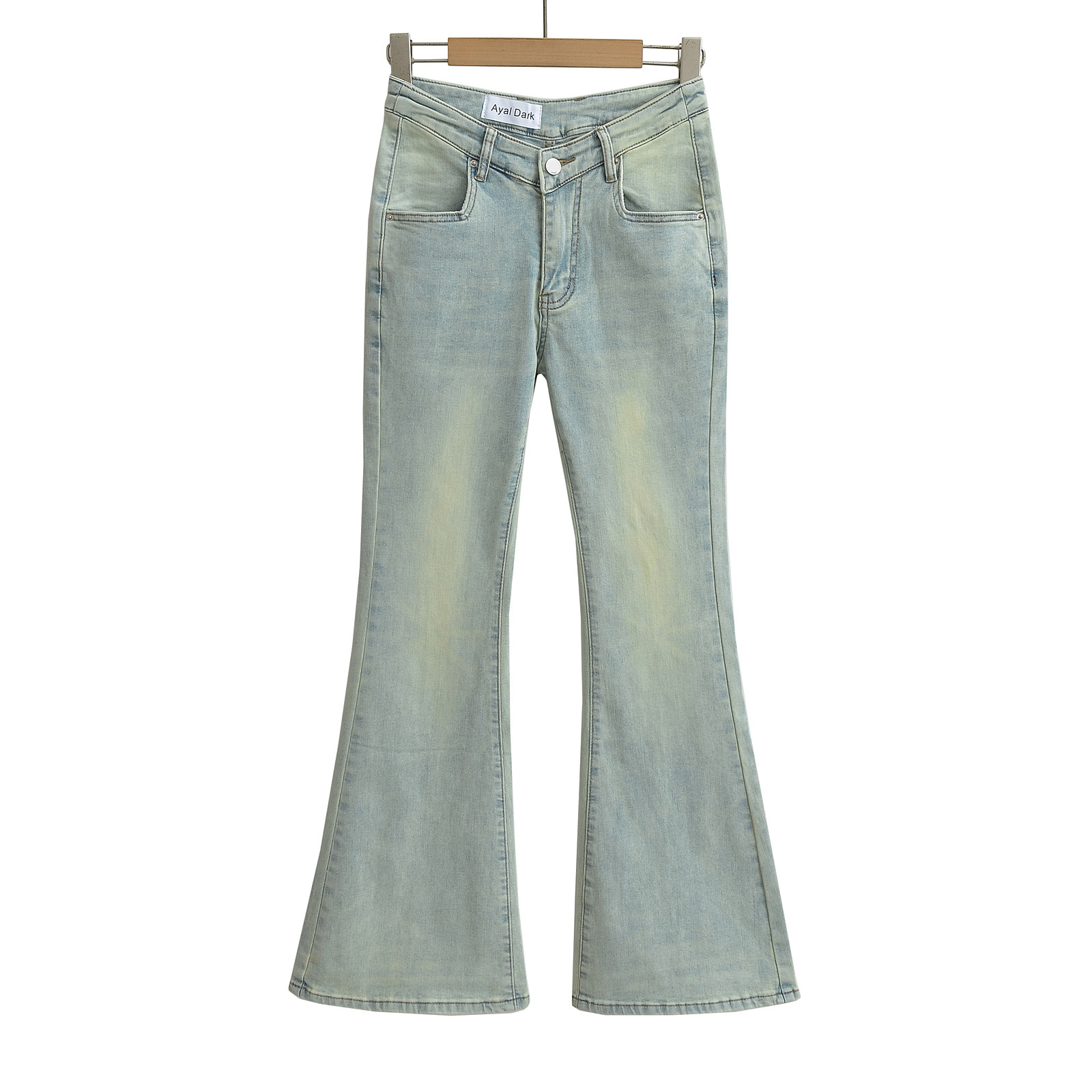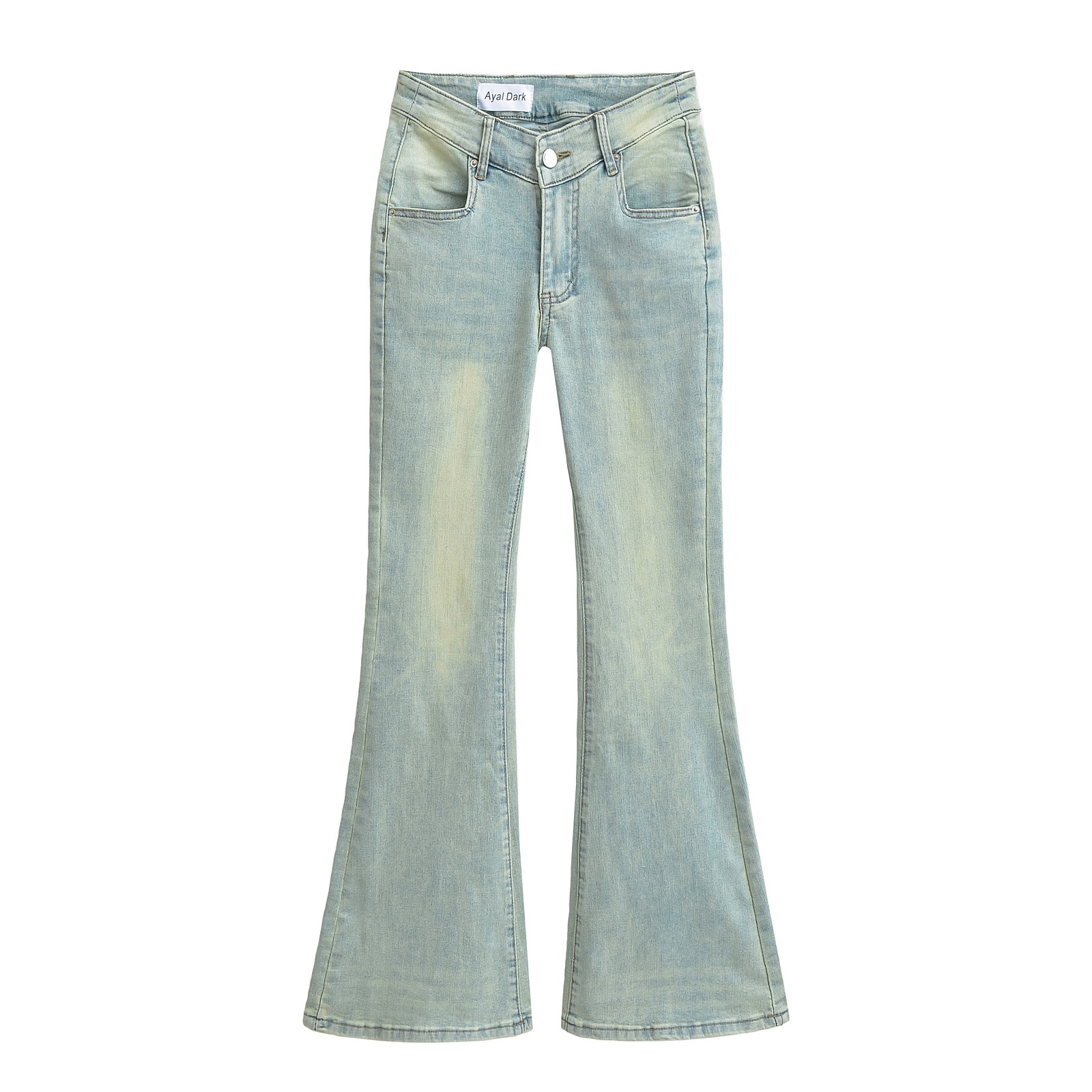 Fuli는 여성을위한 향수를 불러 일으키는 스키니 청바지를 2024 봄 새로운 핫 걸 V 허리 슬리밍 스트레치 걸핑 바지스토어 가기