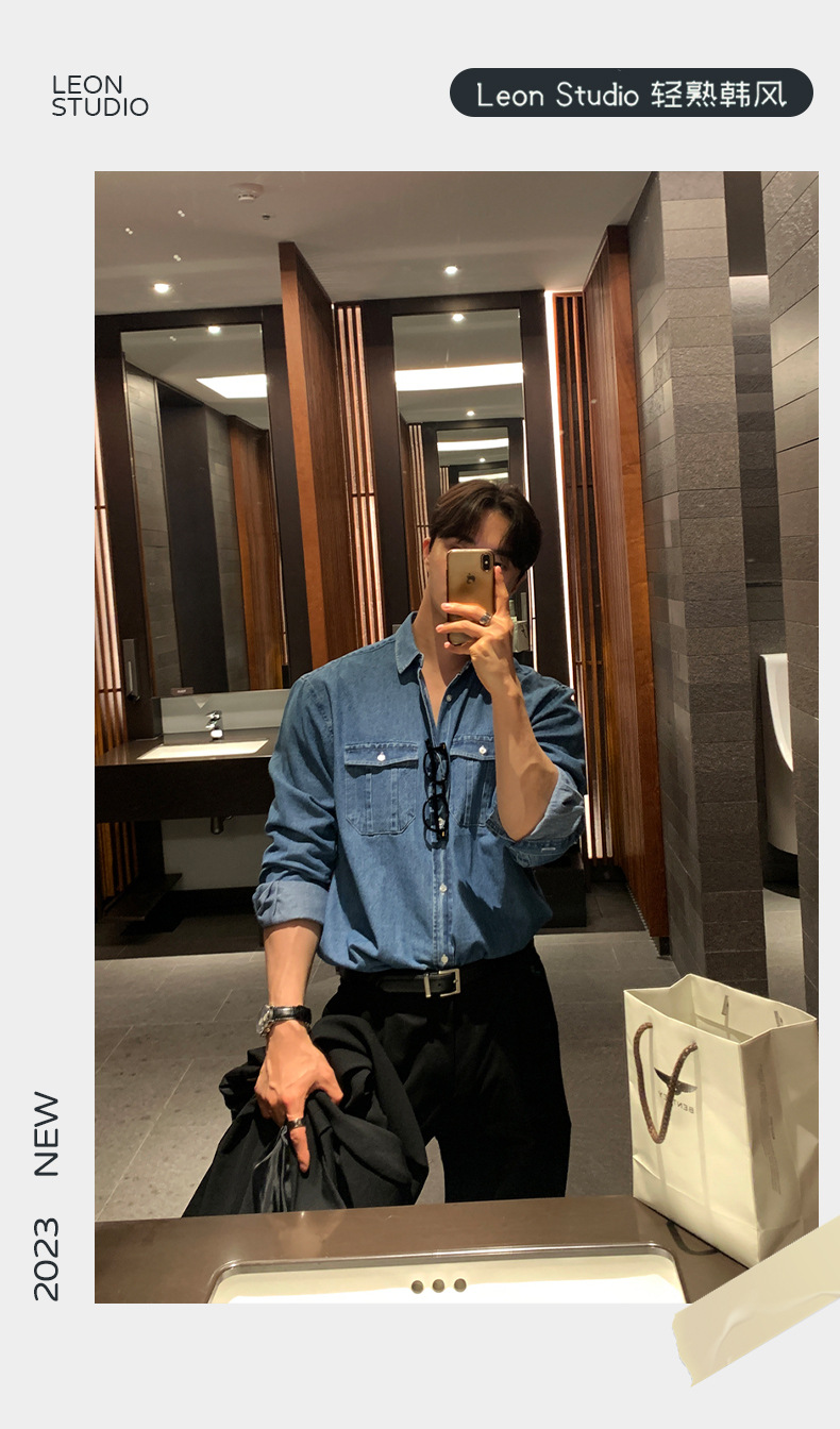 셔츠 툴링 데님 긴팔 남성 한국 스타일의 가벼운 성숙한 스타일 고급 셔츠 영국 유피 남성 셔츠 패션스토어 가기