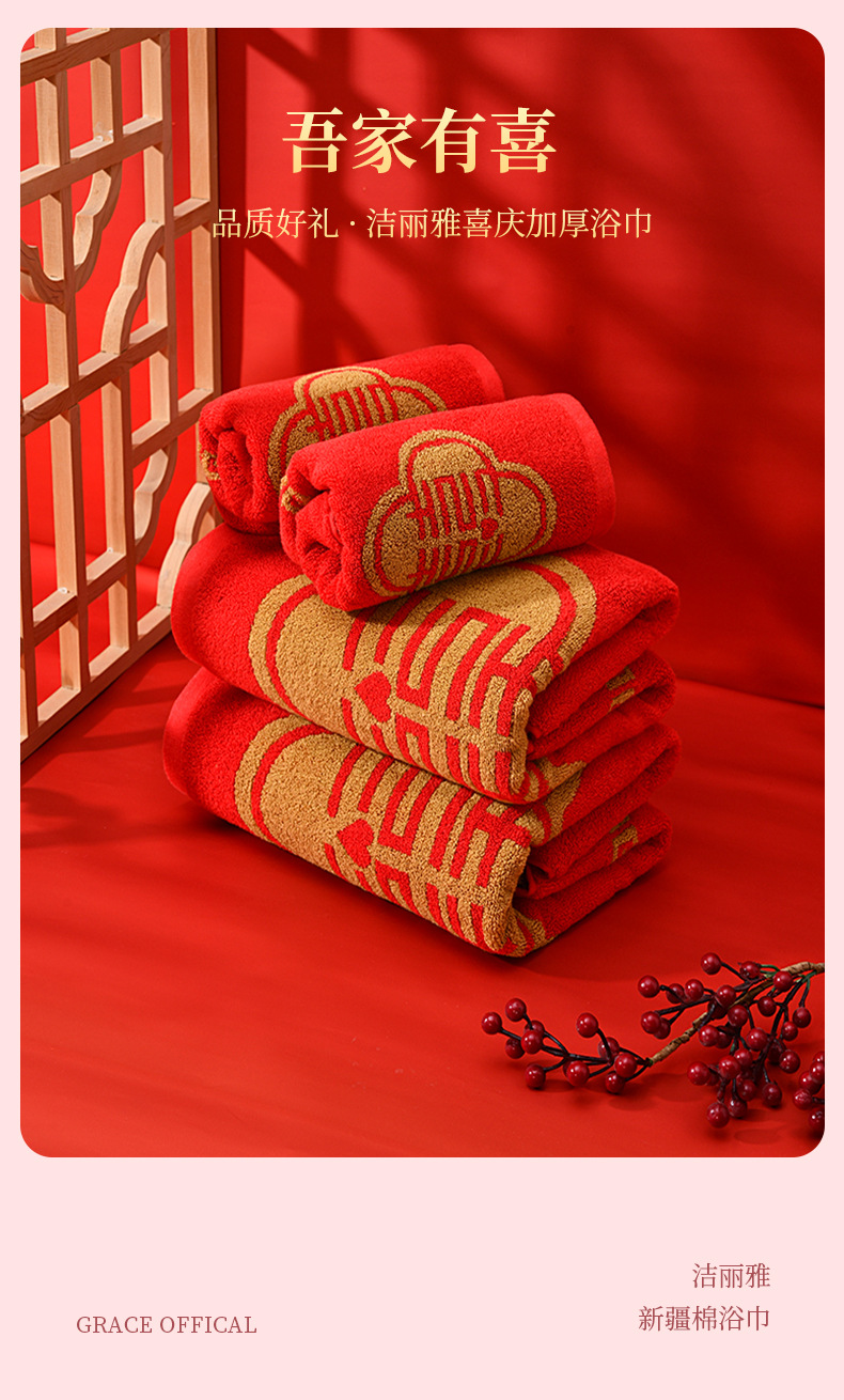 Jieliya 수건 Xixi 순수한면 축제 붉은 두꺼운 결혼식 반환 광장 수건 목욕 타월 도매 231122스토어 가기