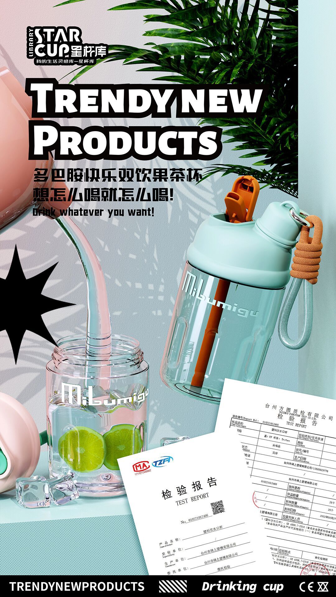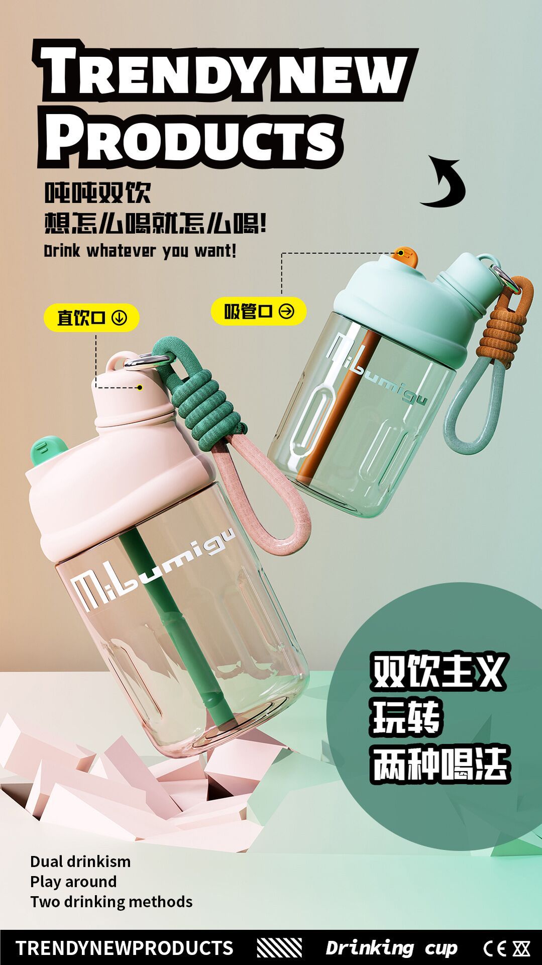 트라이탄 빨대가 있는 고급스러운 휴대용 이중 음료컵, 학생용 휴대컵, 선물컵, 맞춤형 컬러 인쇄 로고스토어 가기